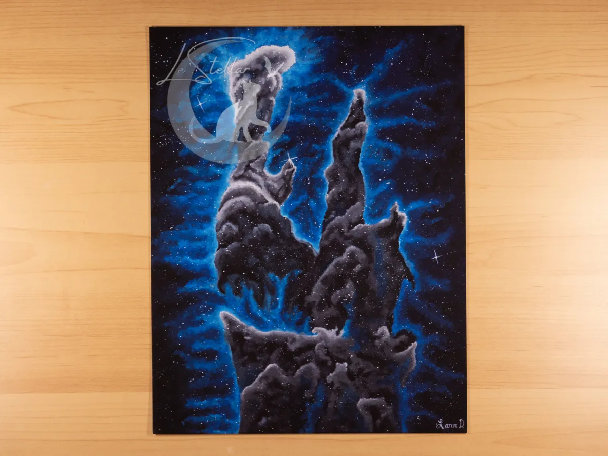 This galaxy art print depicts the awe-striking birth of new stars within the Eagle Nebula, a celestial spectacle located approximately 6,500 light years away. The perfect piece to showcase your deep love for astronomy or a passive fascination with the universe.