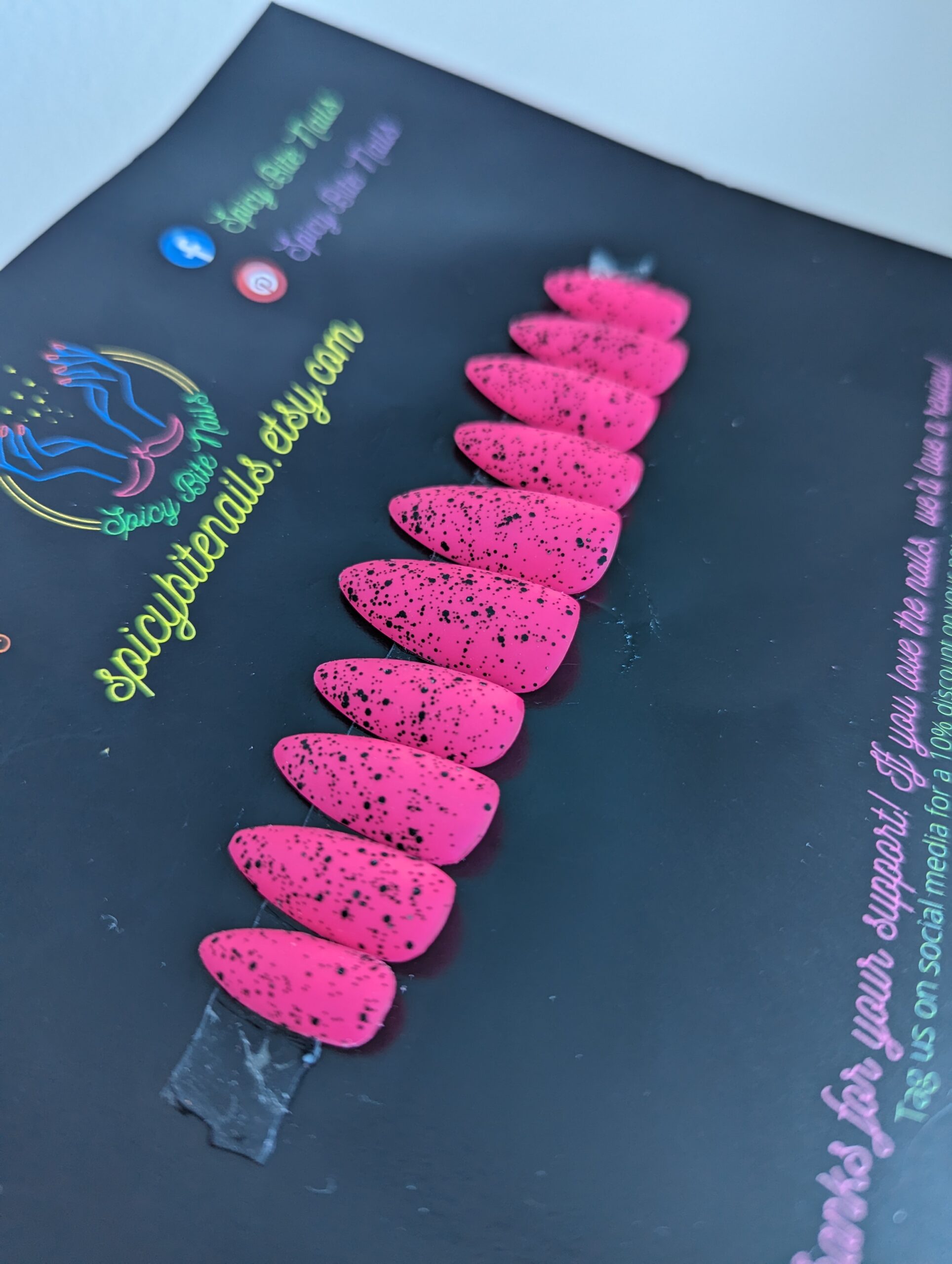 Pink Shock – Matte Speckled Neon Pink Press-On Nail Extensions 10pcs