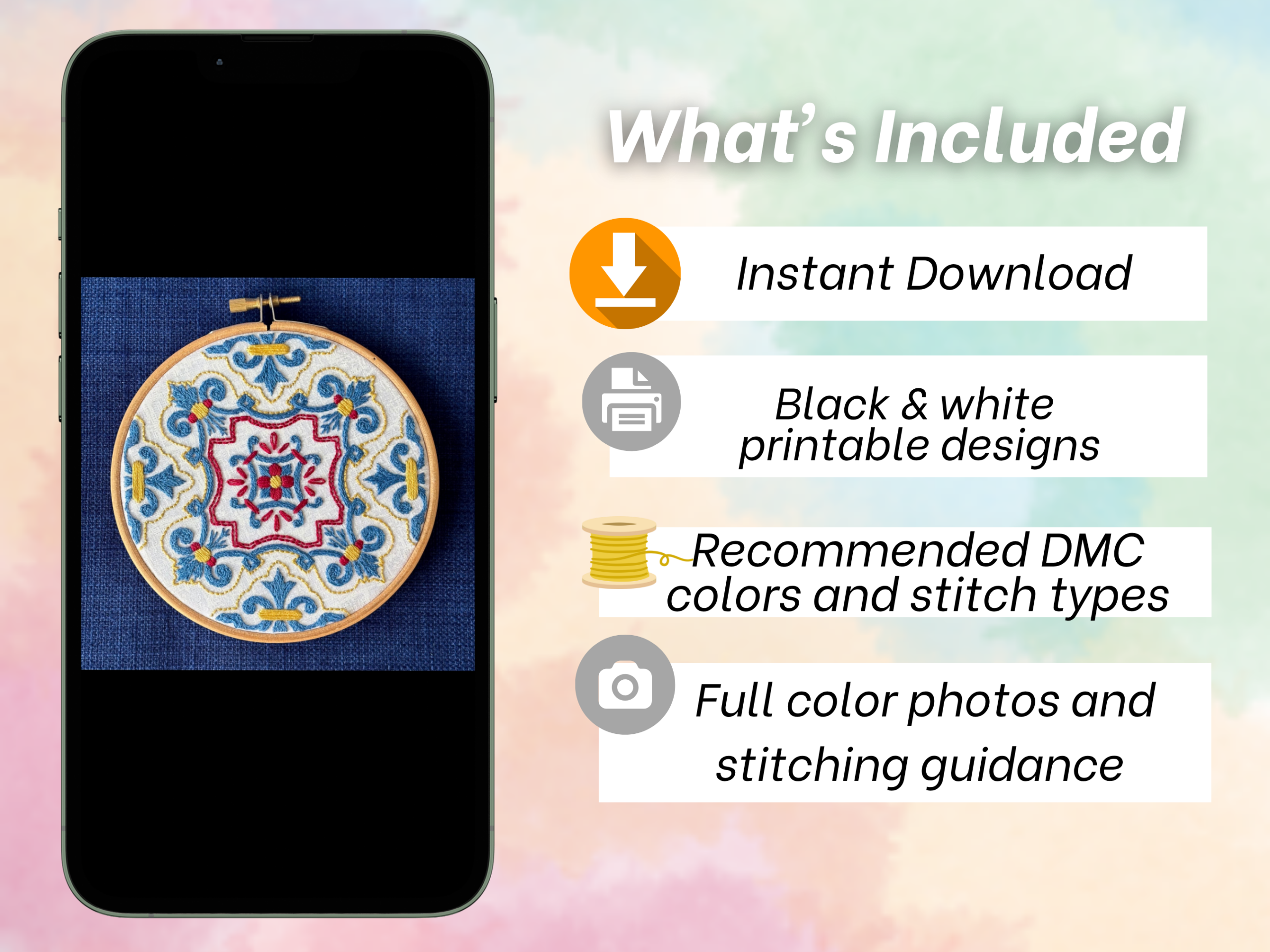 Portuguese Tile Hand Embroidery Design: Lisbon azulejos (PDF Digital Download)