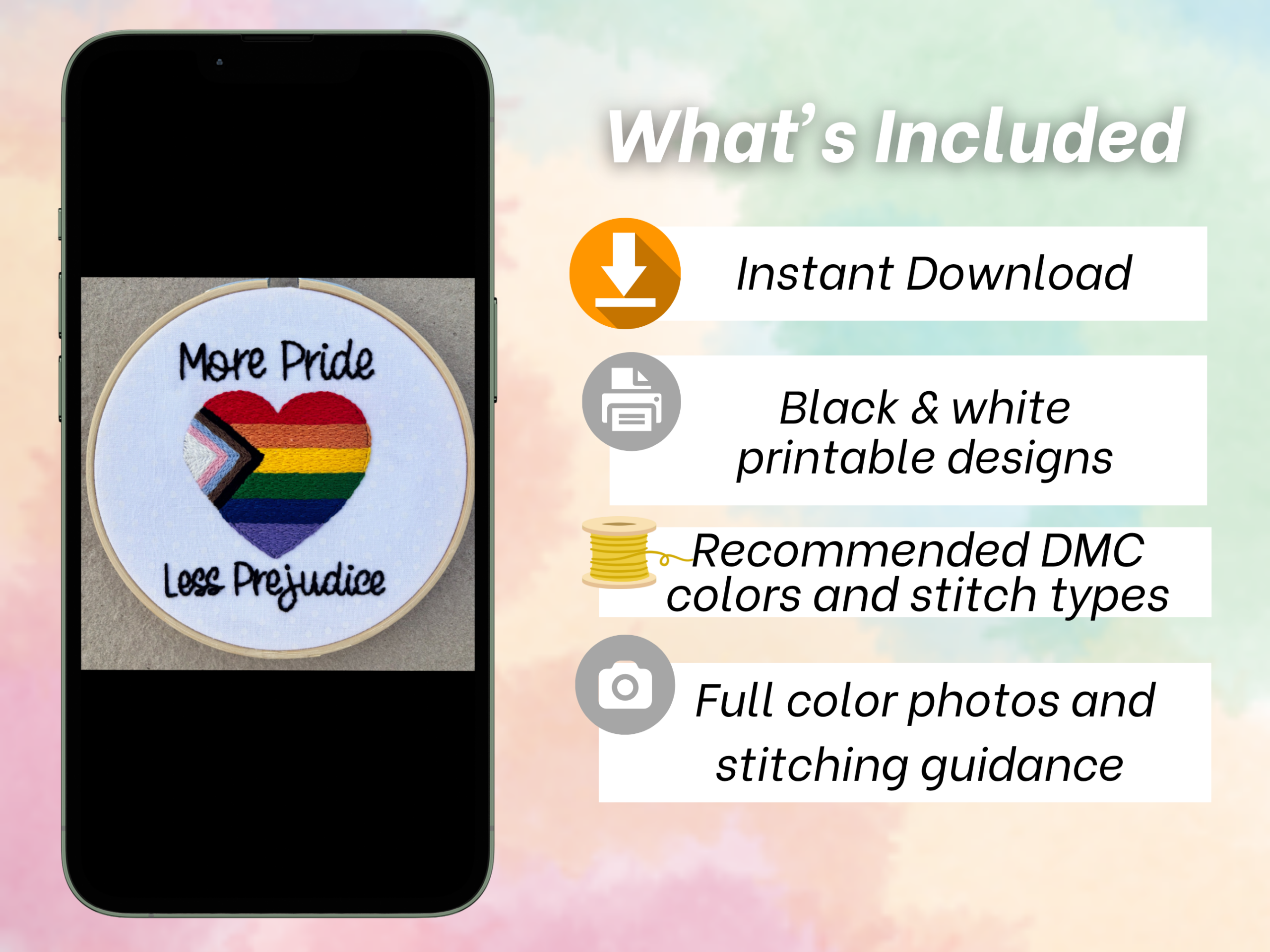 Pride Beginner Hand Embroidery Pattern: More Pride Less Prejudice (PDF Download)