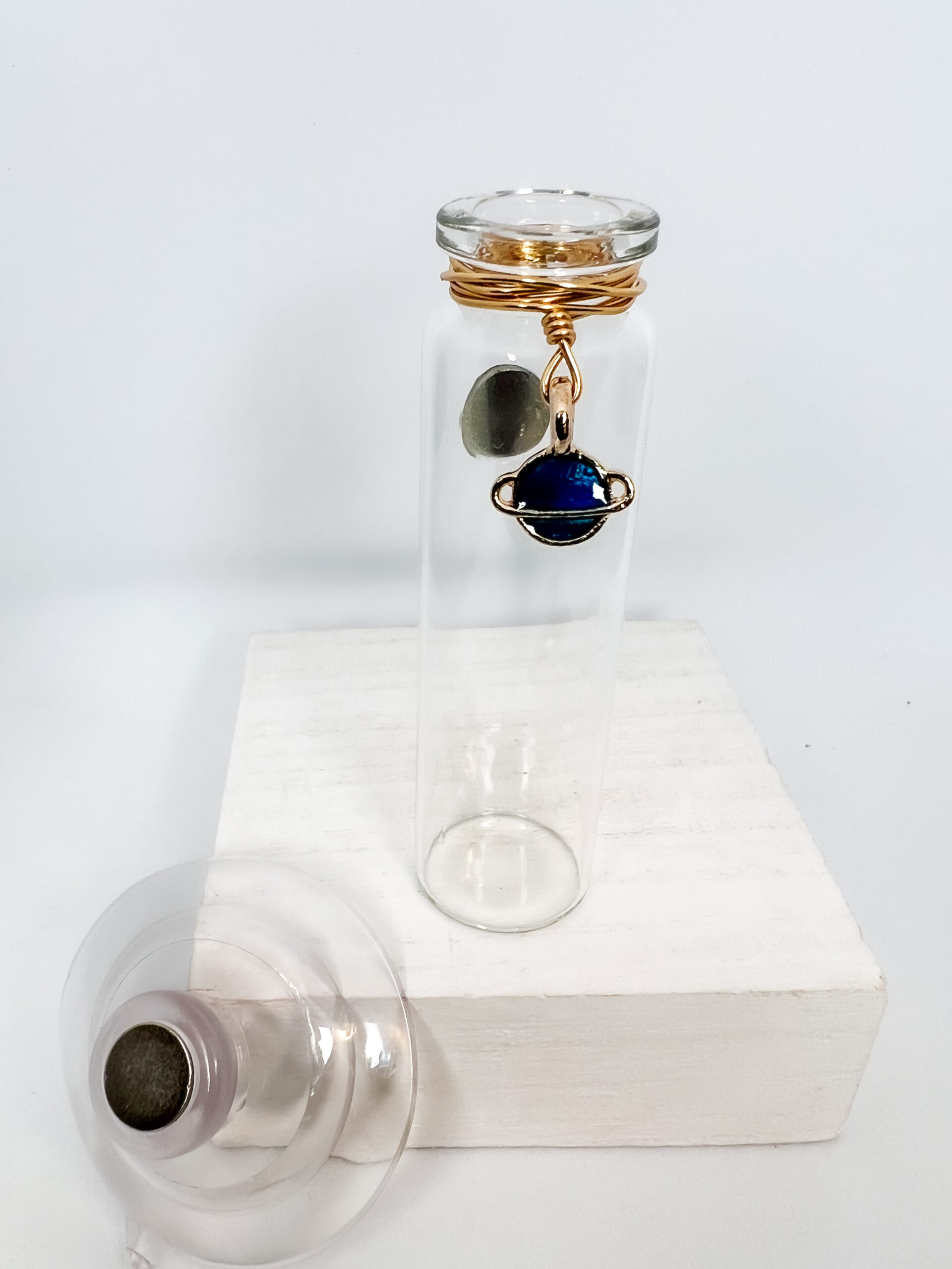 Glass 20ml magnetic propagation station with super strong magnetic suction cup. Comes in cotton muslin gift bag.