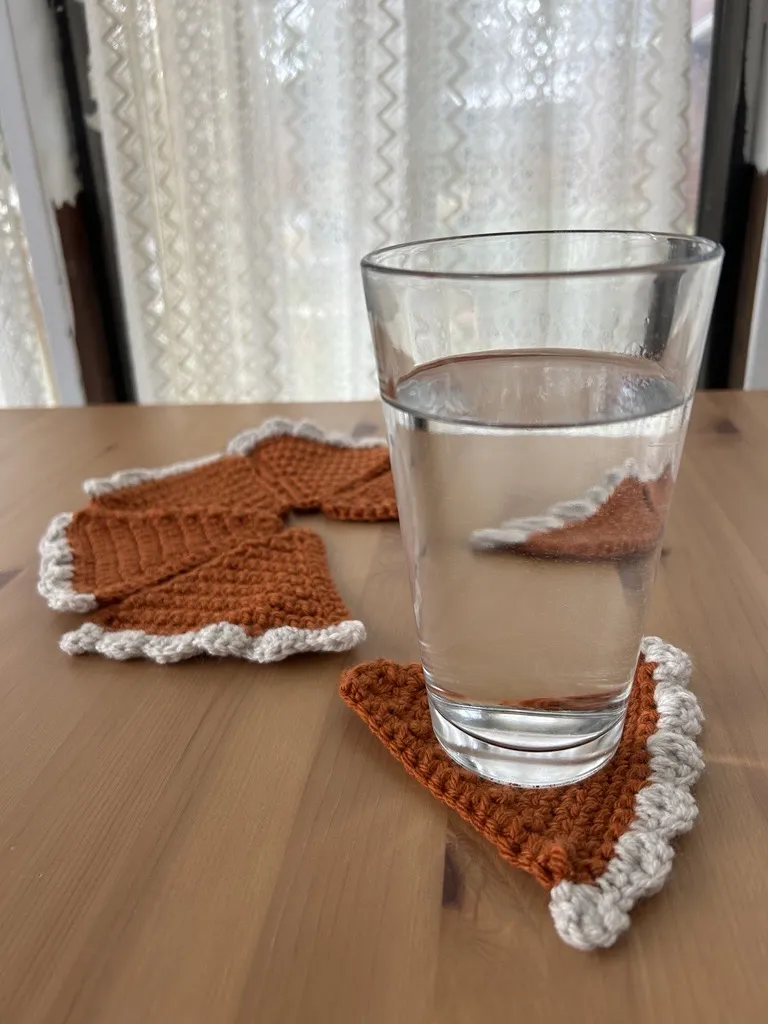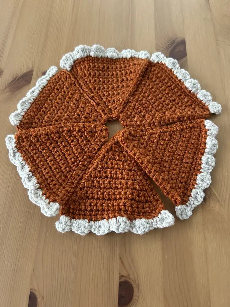 **Comes with a total of 6 coasters to make the full pie. Made with acrylic yarn.