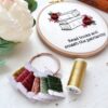 The kit includes: fabric, 5″ hoop, needle, threader, DMC floss, pattern, and stitching instructions.