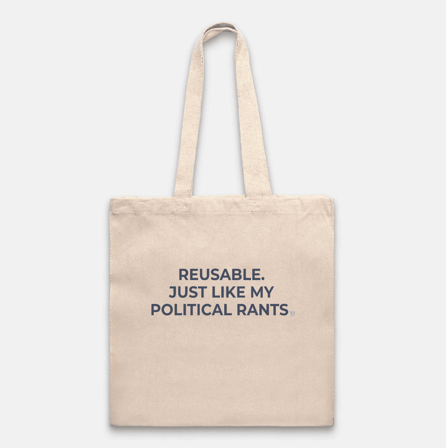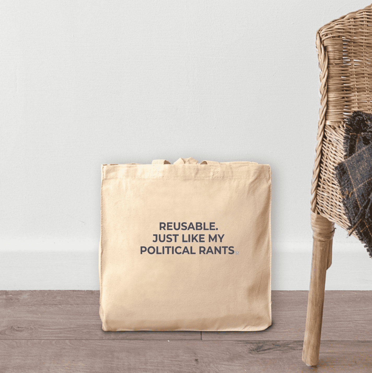 Perfect for grocery runs, bookstore hauls, and impassioned speeches at brunch, the “Reusable. Just Like My Political Rants” Tote is built to last—just like your unwavering commitment to progress. Made from durable cotton canvas, this bag is available in two sizes to suit your activism and daily essentials.