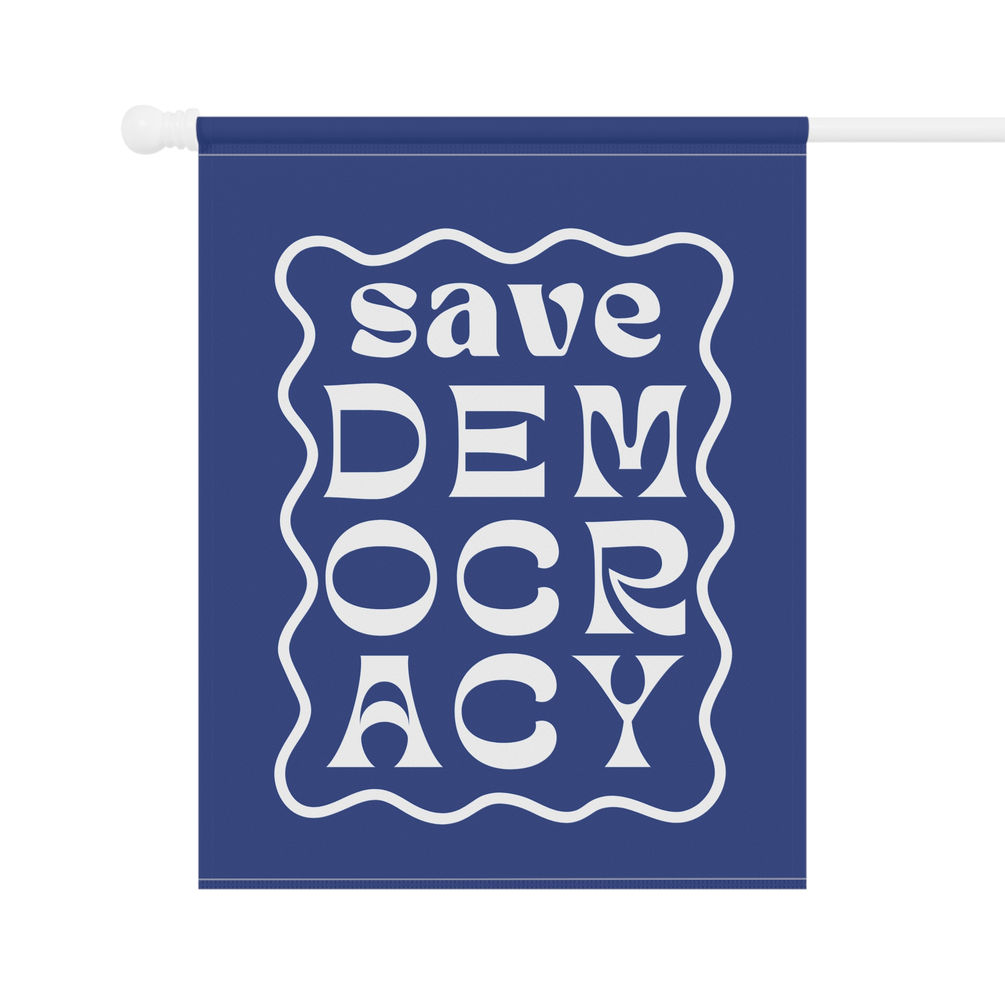 Make your voice heard and your garden stand out with this bold blue garden flag featuring crisp white “Save Democracy” lettering and a unique wavy white border.