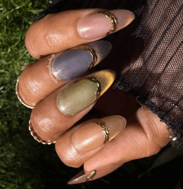 witchy nails • serpent nails • snake press on nails • green cat eye nails • gold chrome nails • mystical press on nails • luxury press on nails • gothic nails • occult nails • witchcore nails • enchanted nails • handmade press on nails