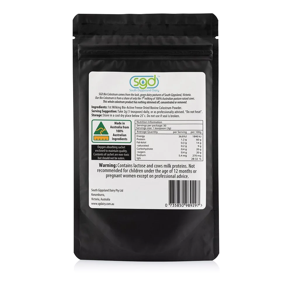 SGD Australian Bio Colostrum powder is everything a colostrum supplement should be. They have a simple philosophy, which is to create the best colostrum in the world. They are based in South Gippsland, the heart of Australia’s clean, green dairy industry. They are a family-owned and run business that started by collecting colostrum from their own farm.