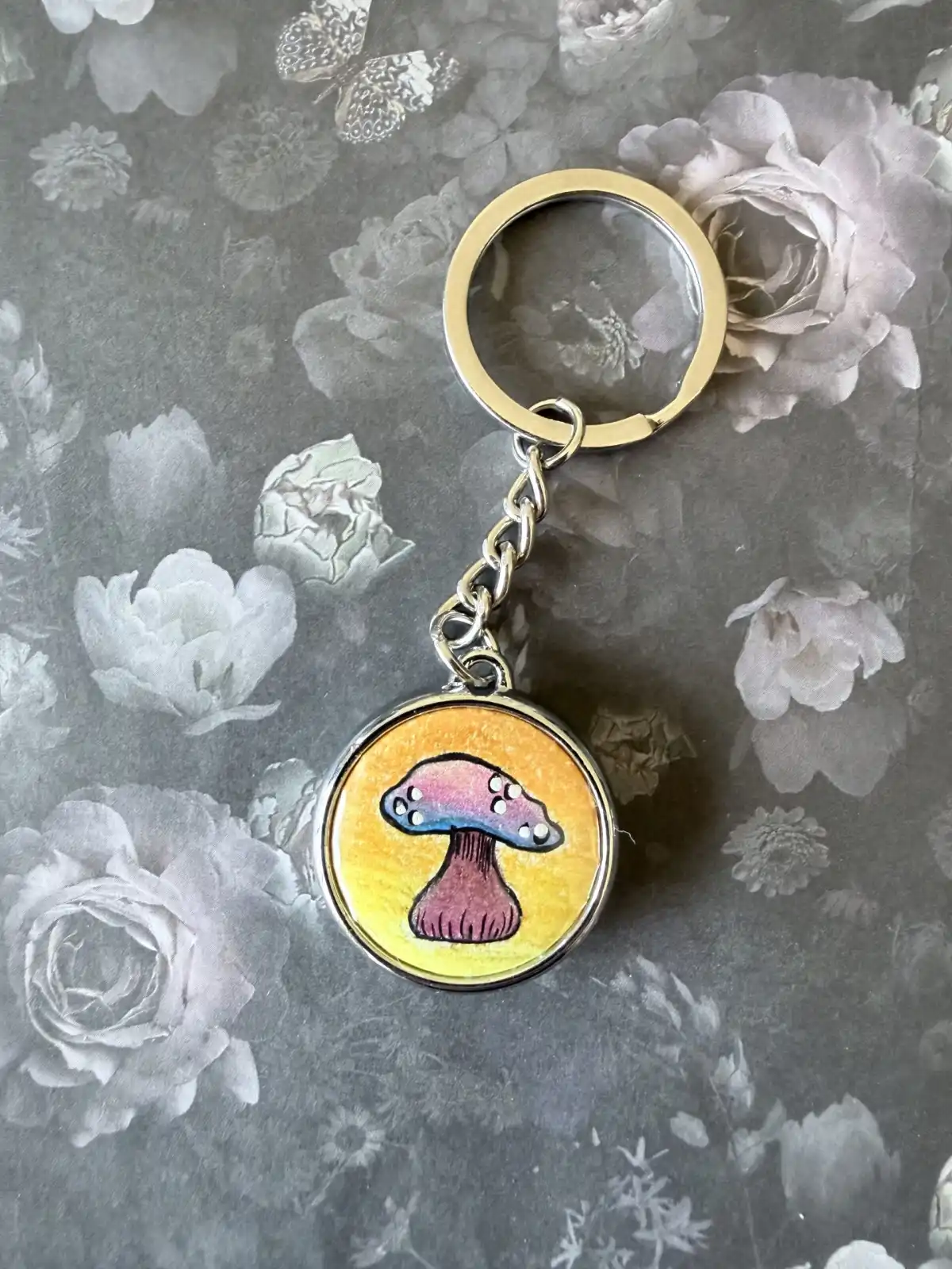 This keychain was hand drawn and hand assembled, and is the only one of its kind!