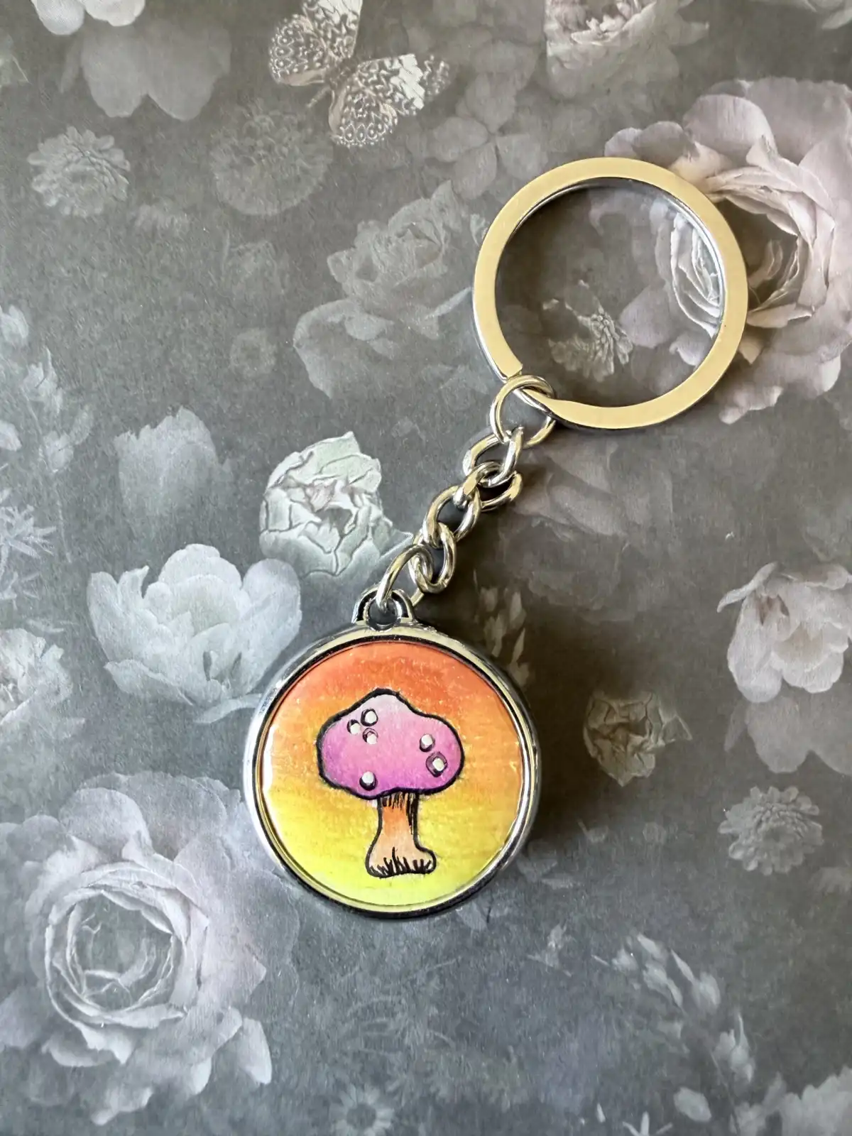 This keychain was hand drawn and hand assembled, and is the only one of its kind!