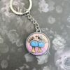 This keychain was hand drawn and hand assembled, and is the only one of its kind!