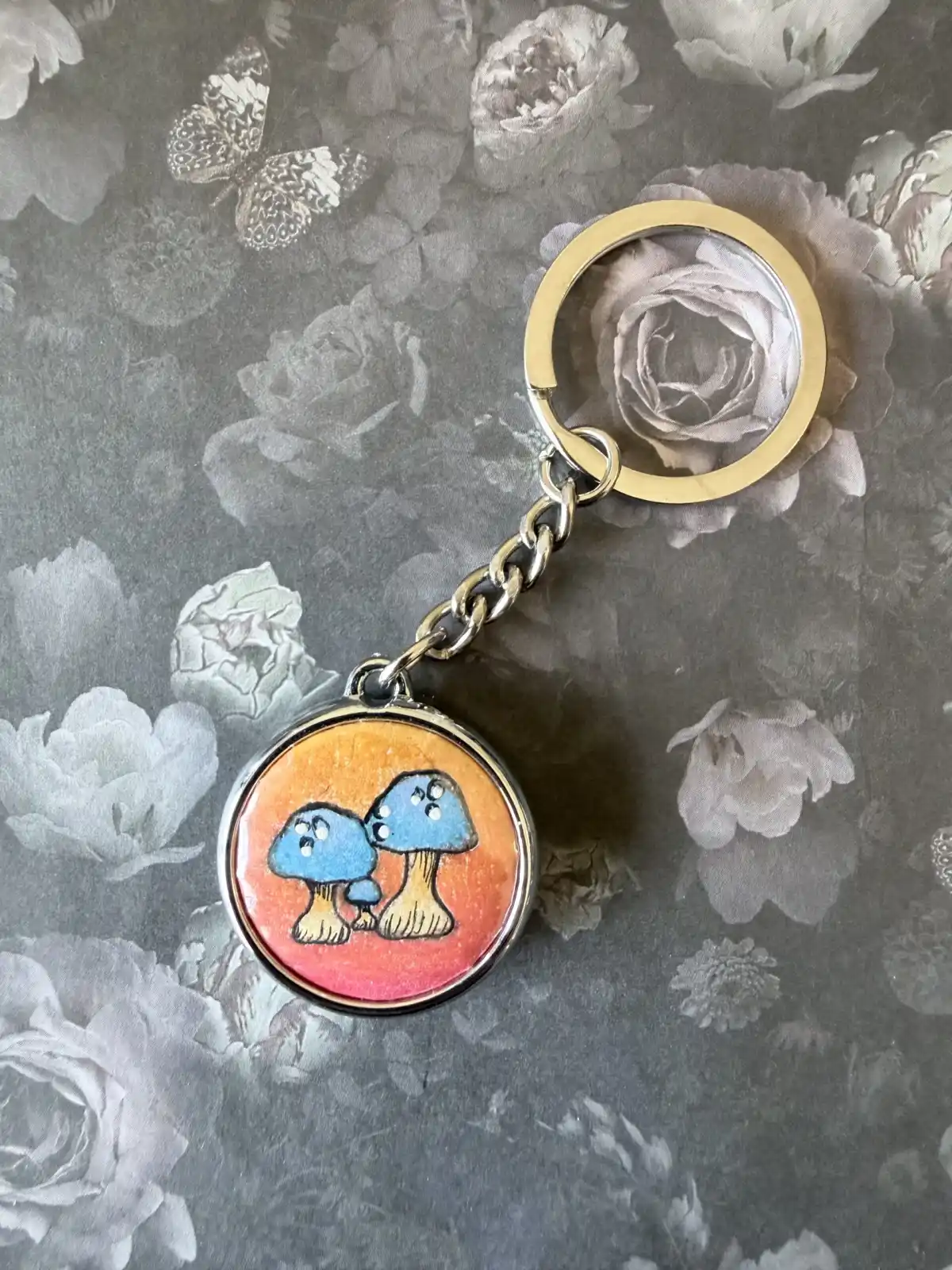 This keychain was hand drawn and hand assembled, and is the only one of its kind!