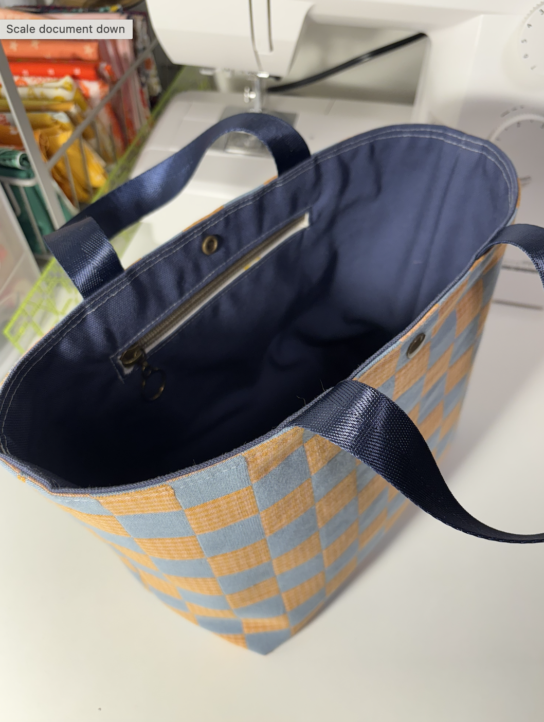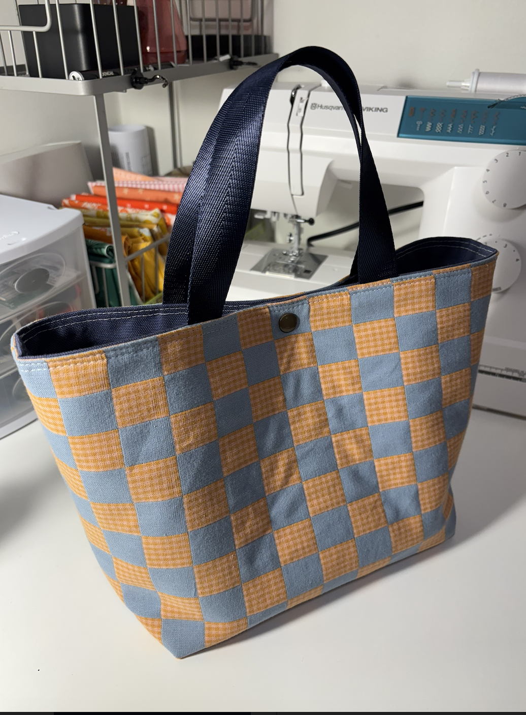 This small tote is perfect for carrying your everyday essentials. The outer fabric is a soft woven cotton by Fableism, while the inner lining is cotton canvas. Also includes an inner zipper pocket with a cute fruit print! Handles are made of a heavy-duty nylon webbing and measure approximately 12″ each. Bag includes a snap closure at the top.