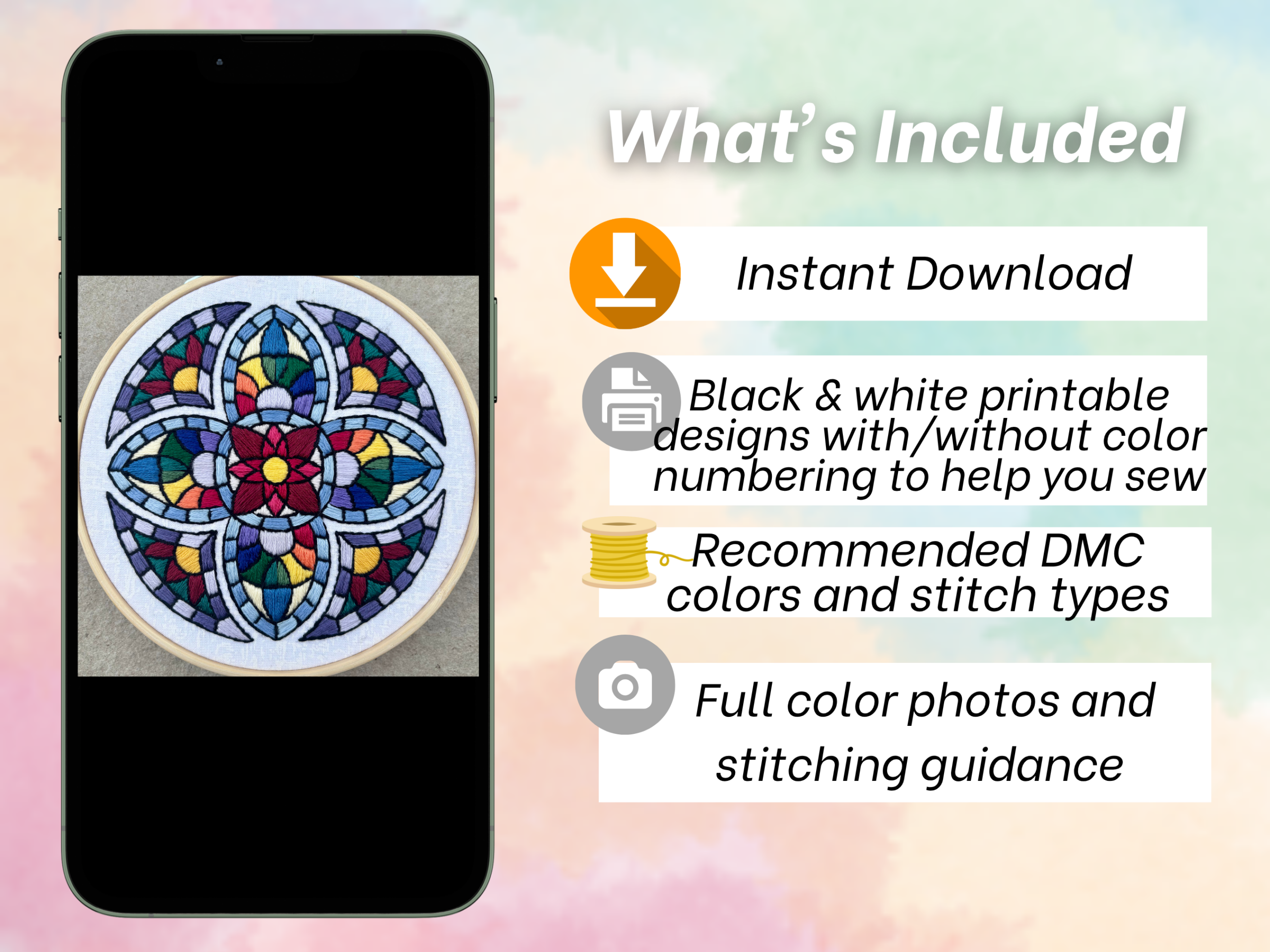 – Full color and closeup photos for color and stitch guidance