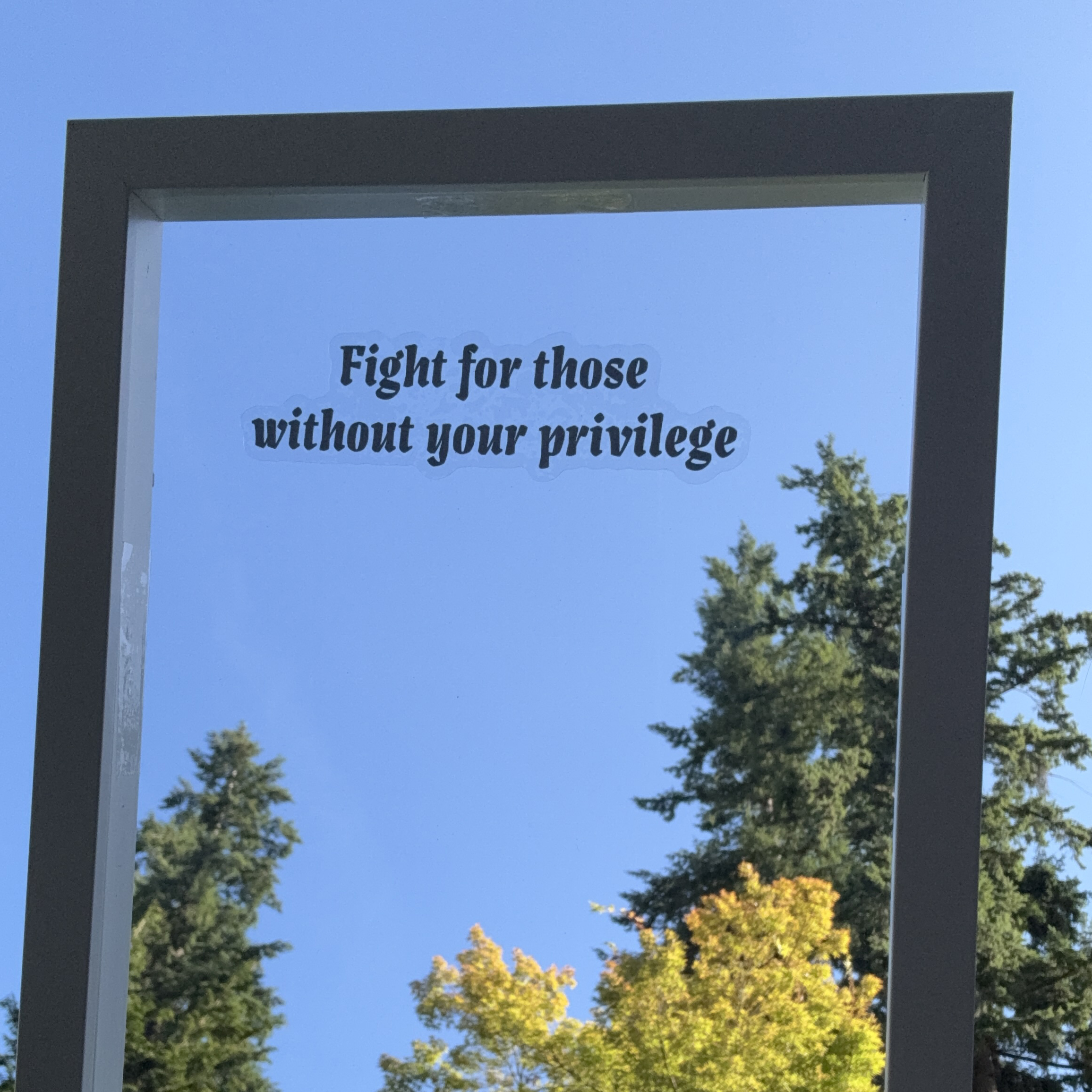 - Satin white vinyl with a 1/8″ (3.2mm) white kiss-cut border