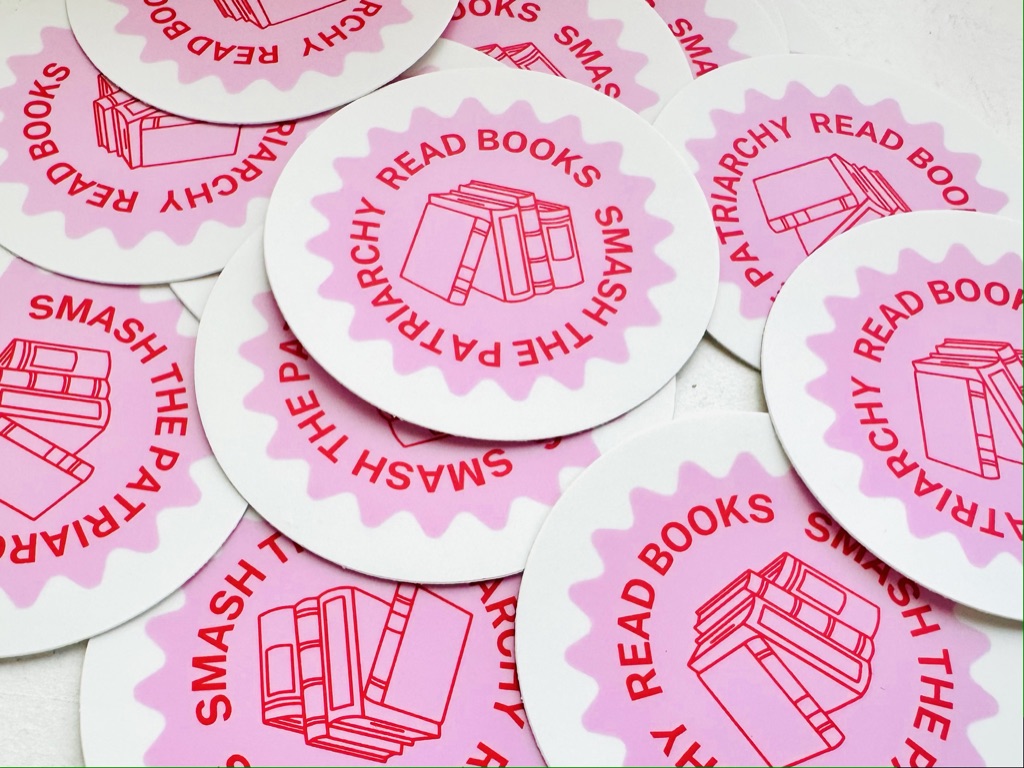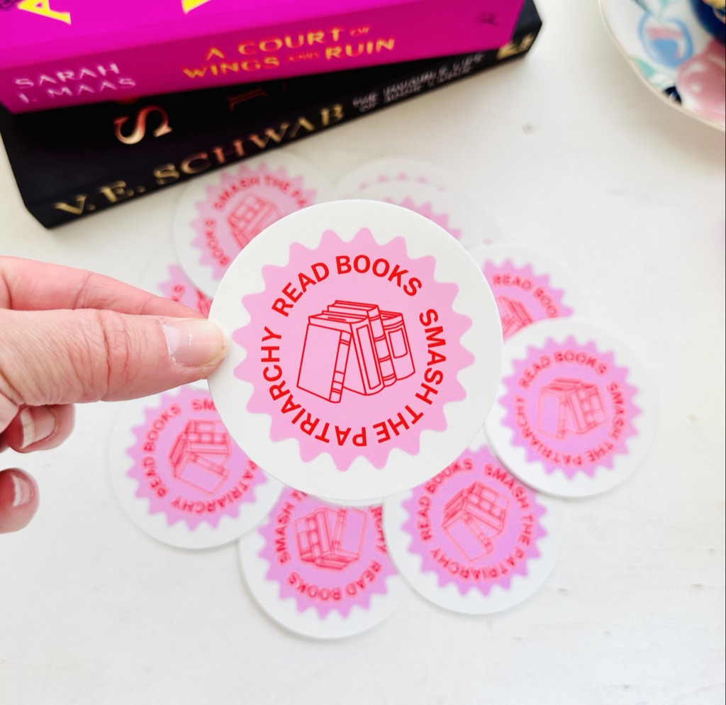 This is a 3 inch sticker to show everyone how much you love books and smashing the patriarchy.
