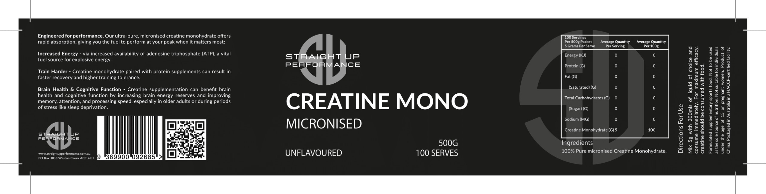 Straight Up Performance Micronized Creatine Monohydrate – 500 grams