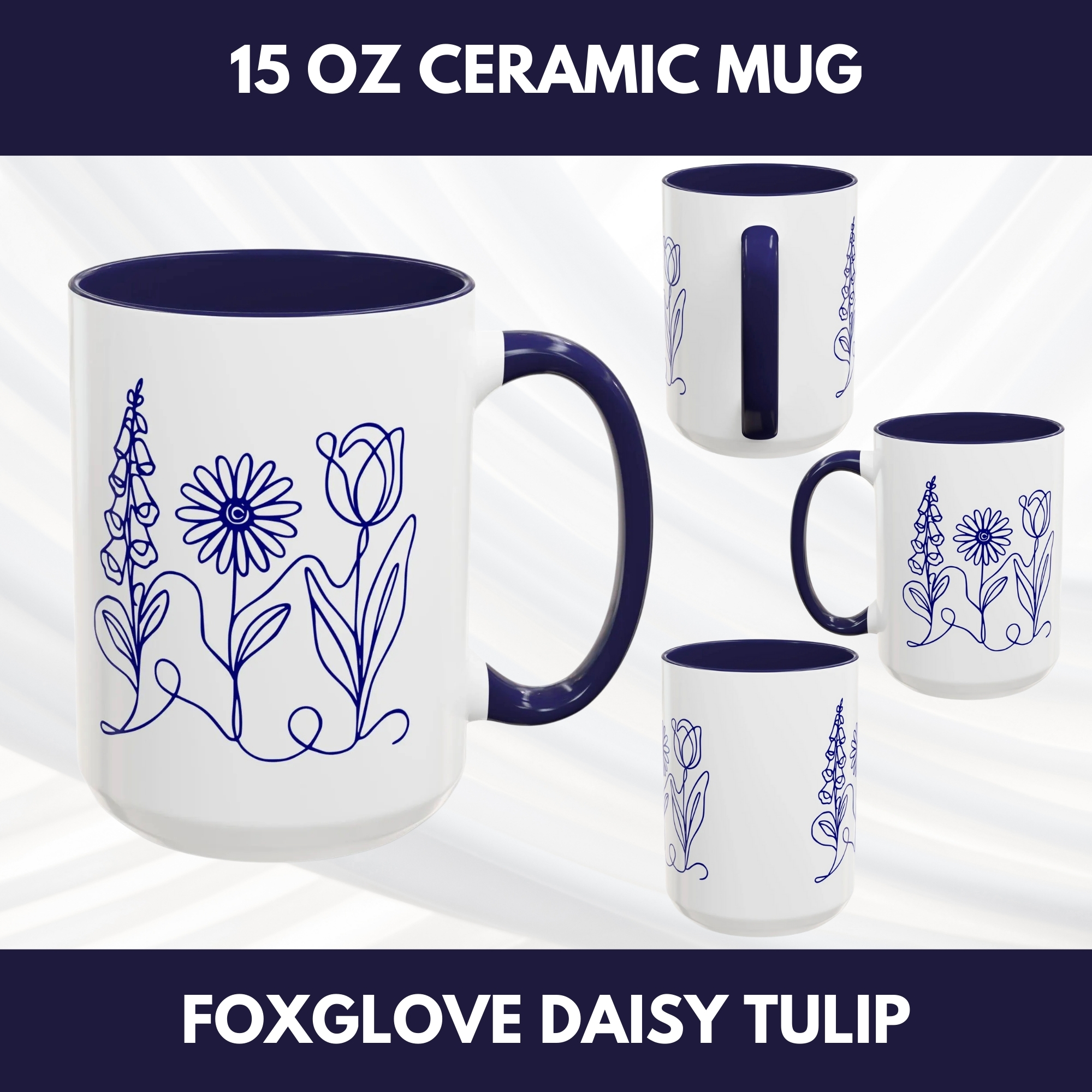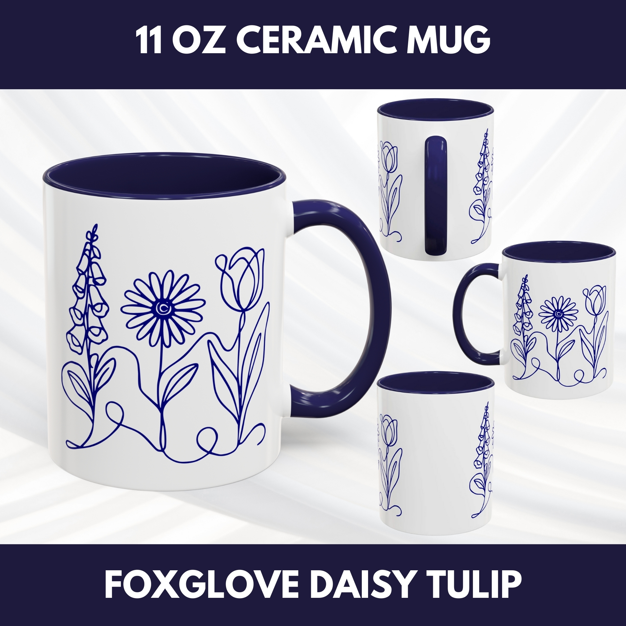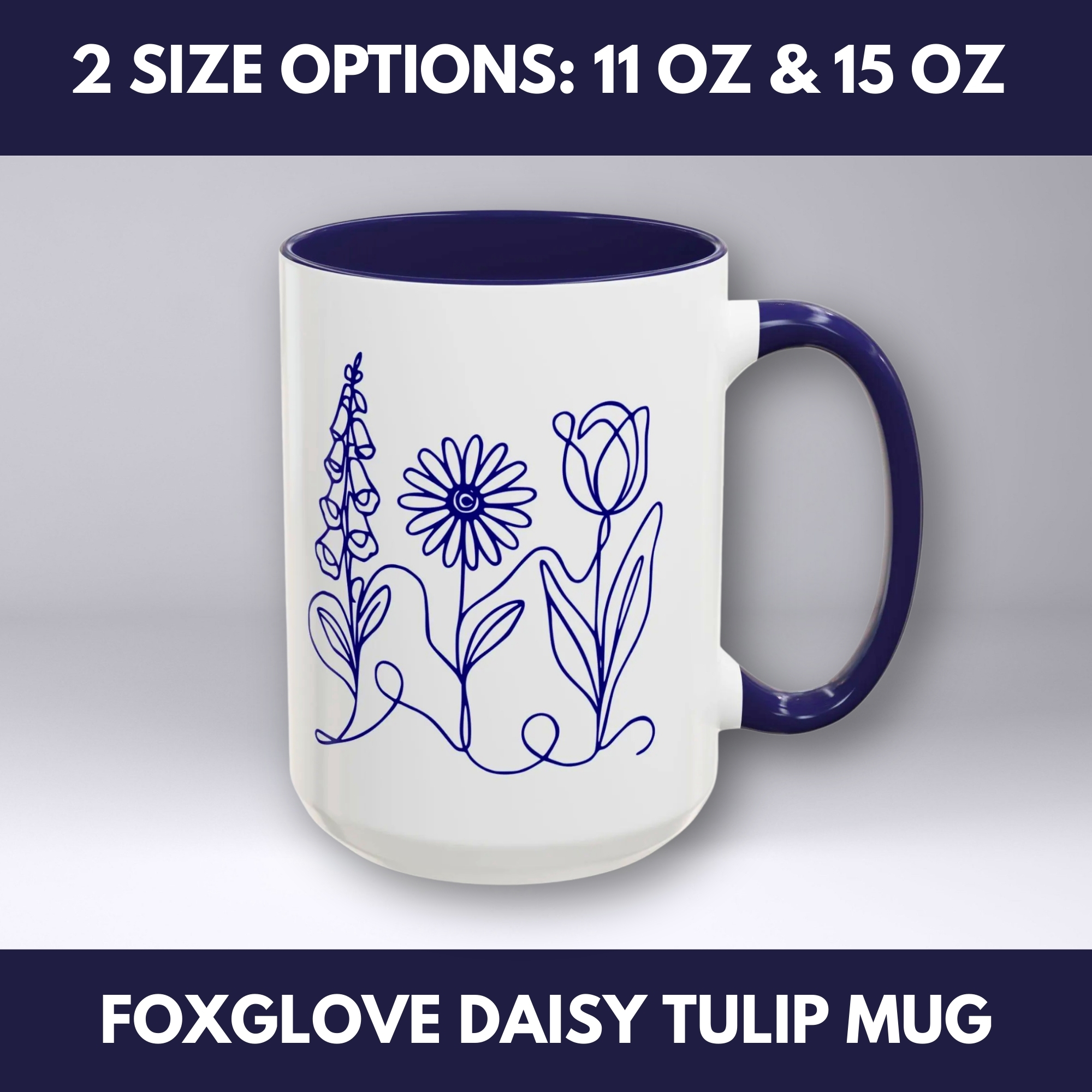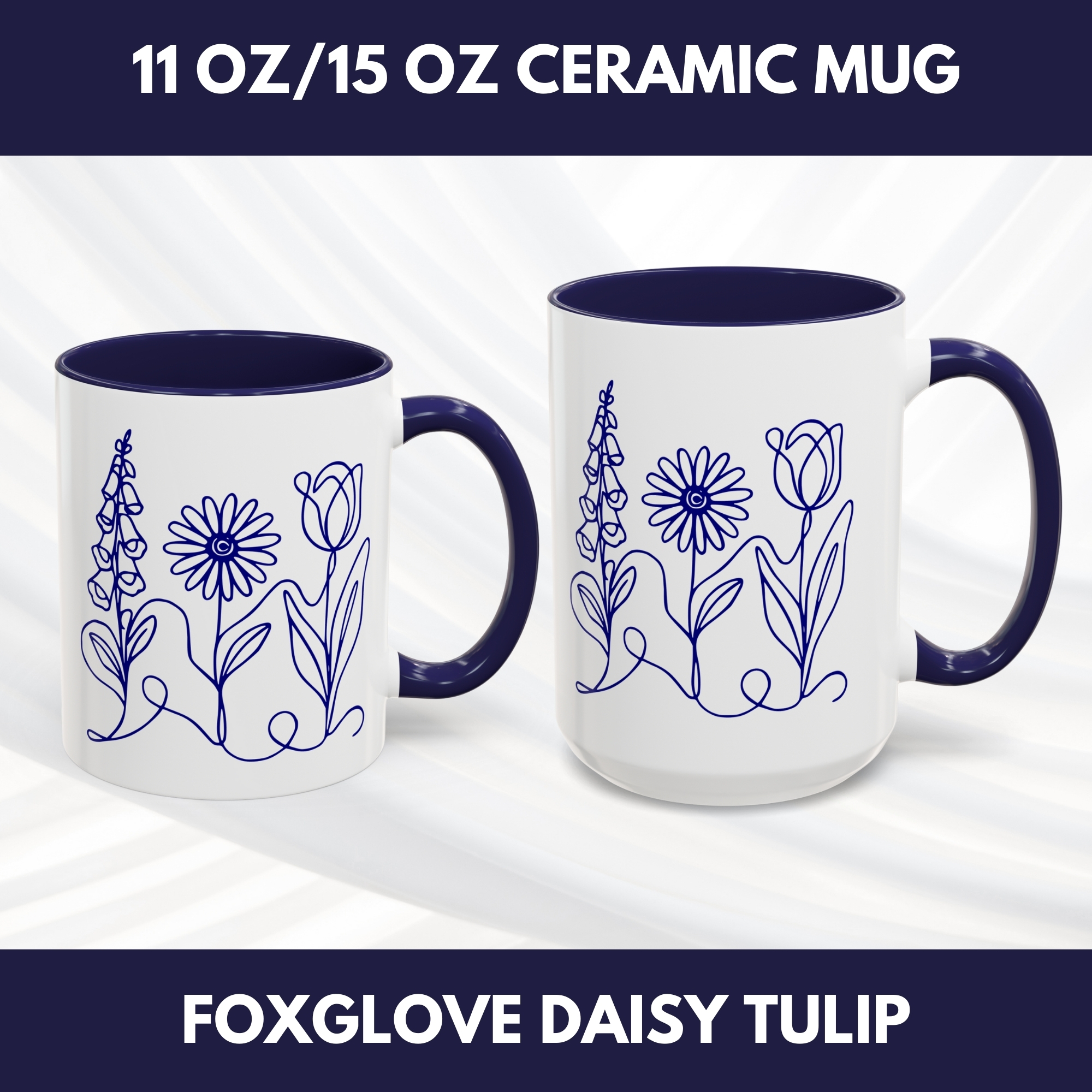 Accent Coffee Mug – Foxglove Daisy Tulip | Subtle FDT Flowers (2 Size Options)