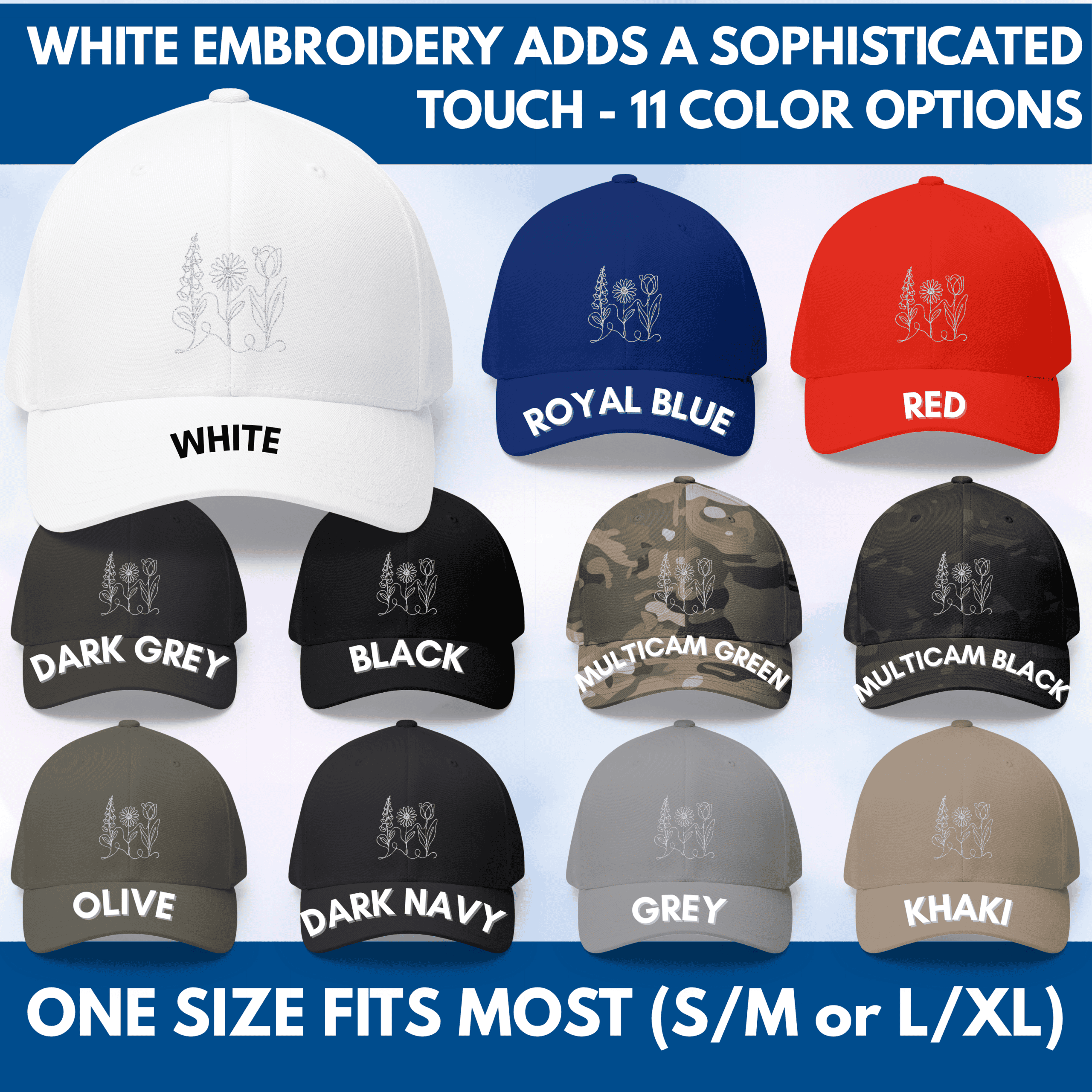 The only hat you’ll ever need. Replace the ridiculous “Make America Great Again” with FDT Flowers. Available in an array of delightful colors. Channel your inner Kamala with the camo varieties. Or go ahead and mock the MAGA people with the red. Any way you choose to resist is the right way. This Closed-Back Structured Cap has a stretchy band, designed as one size fits most. White embroidery adds style and sophistication with the Foxglove Daisy Tulip design. Great for casual outings or outdoor adventures, this hat is perfect for a sunny day at the park, watching your kid’s soccer game, attending a protest, or hitting the trails. Makes a great gift for family and friends!