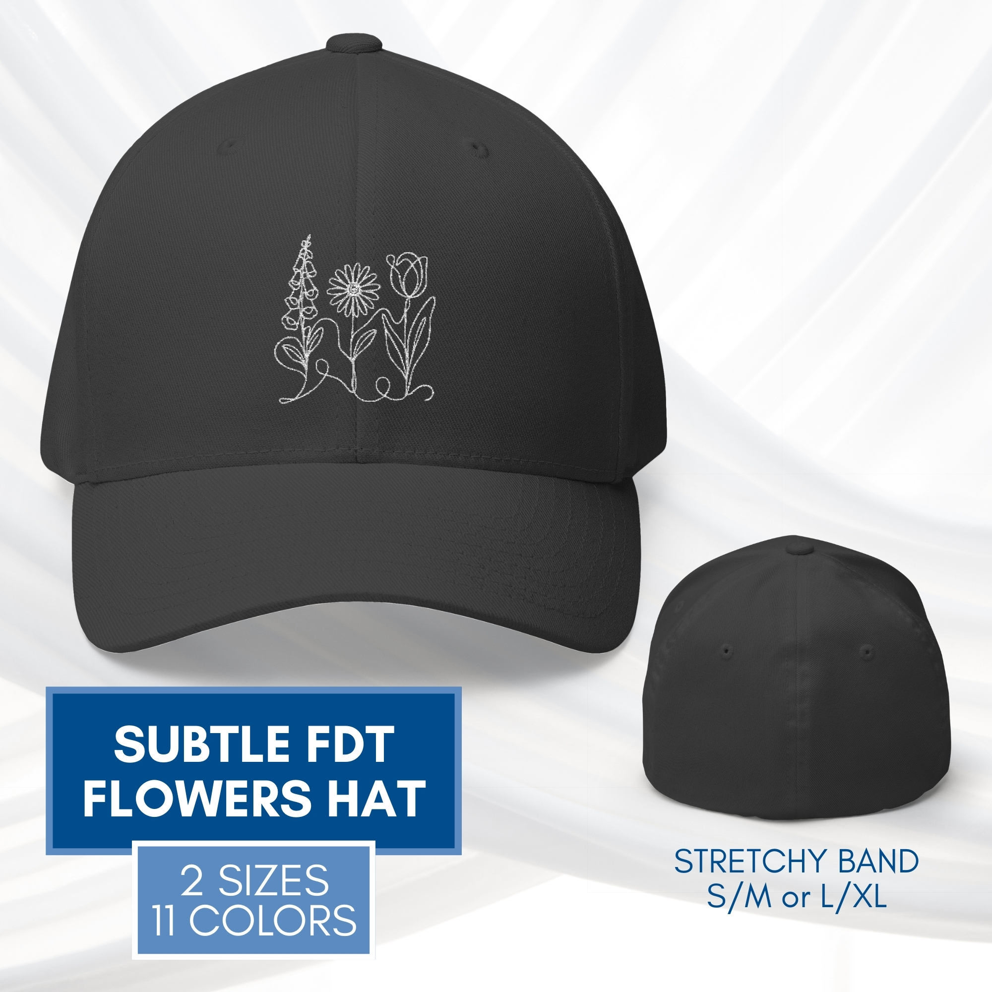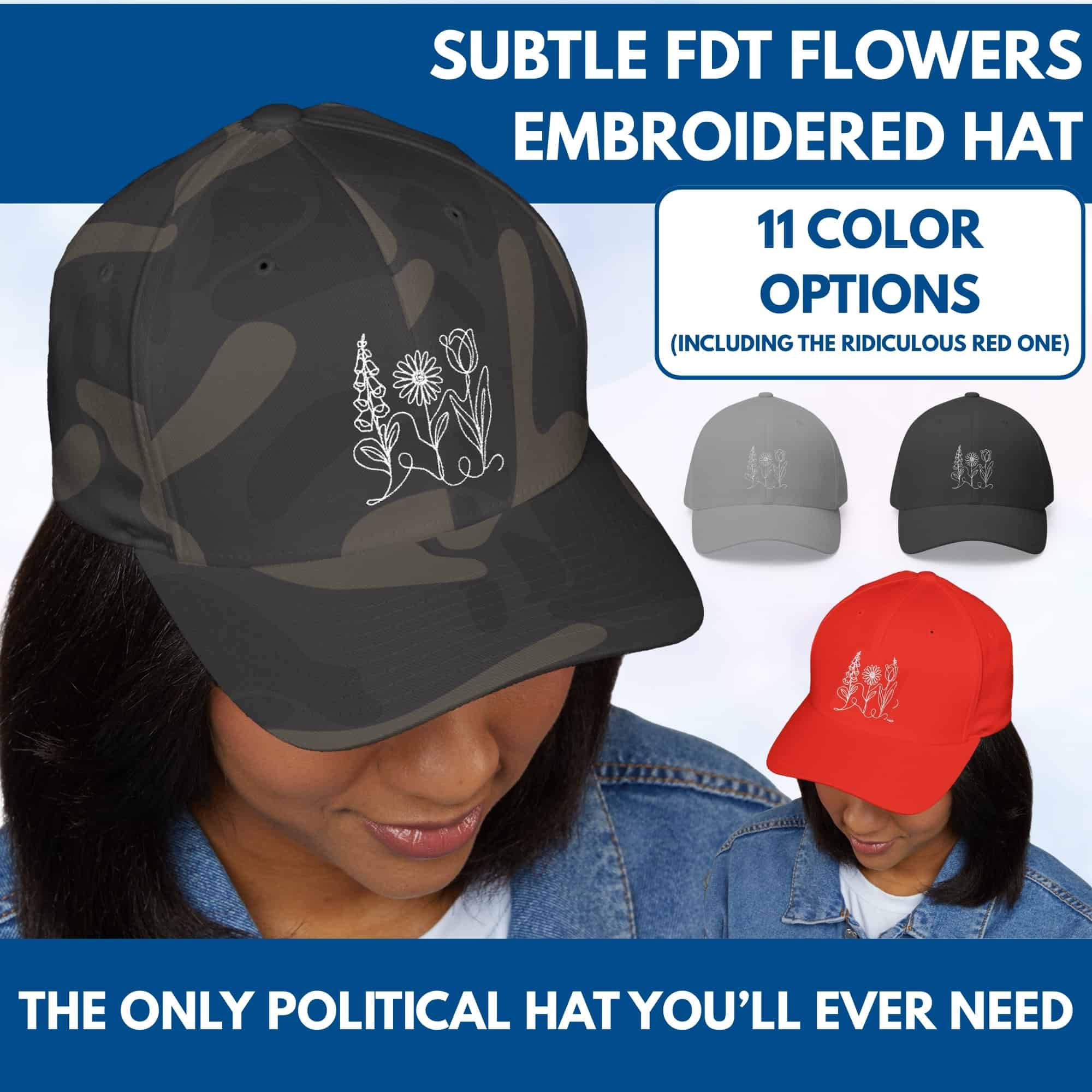 Subtle FDT Flowers Embroidered Baseball Cap | Anti-Trump Hat (2 Sizes, Stretchy Band)