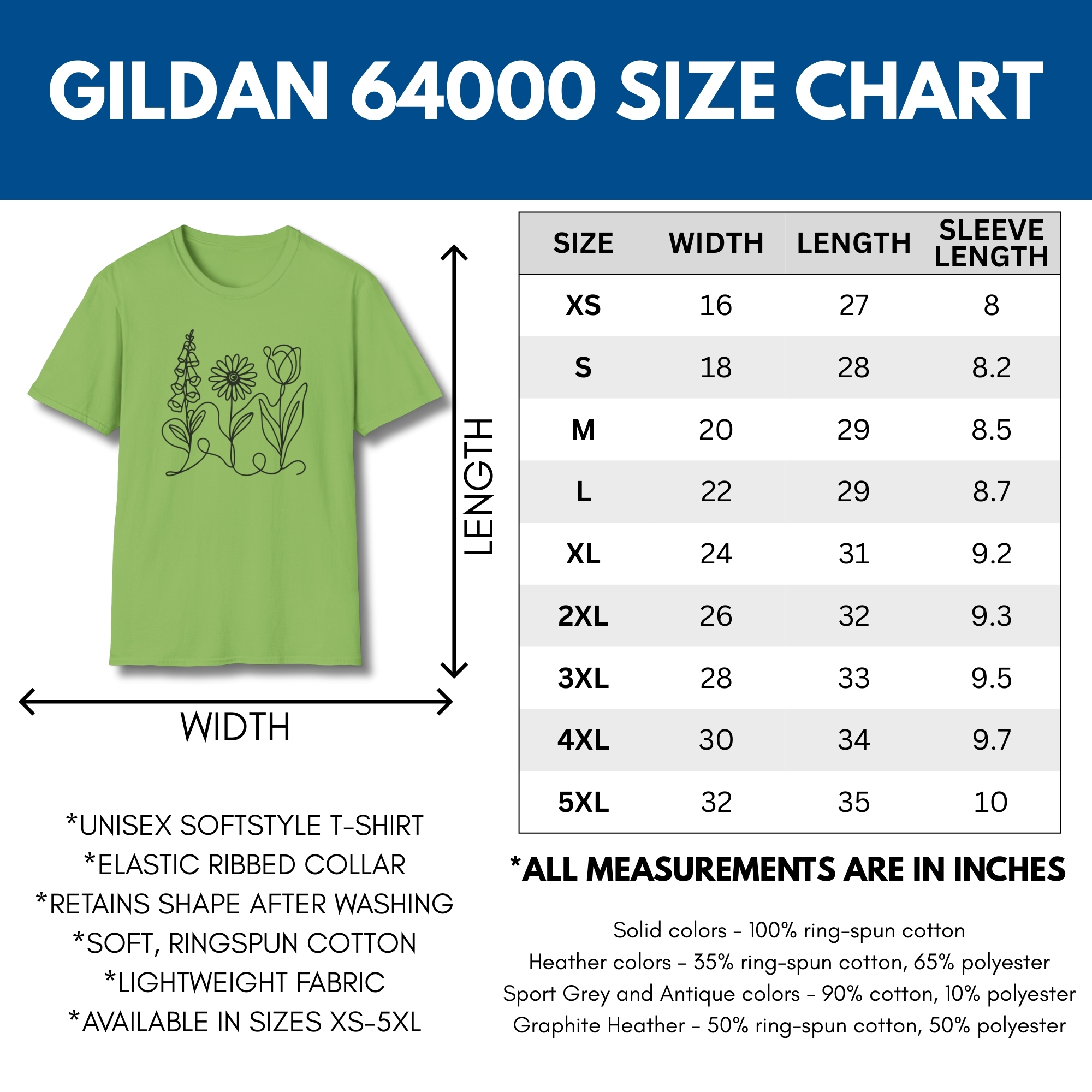 | Size | S, M, L, XL, 2XL, 3XL, 4XL |