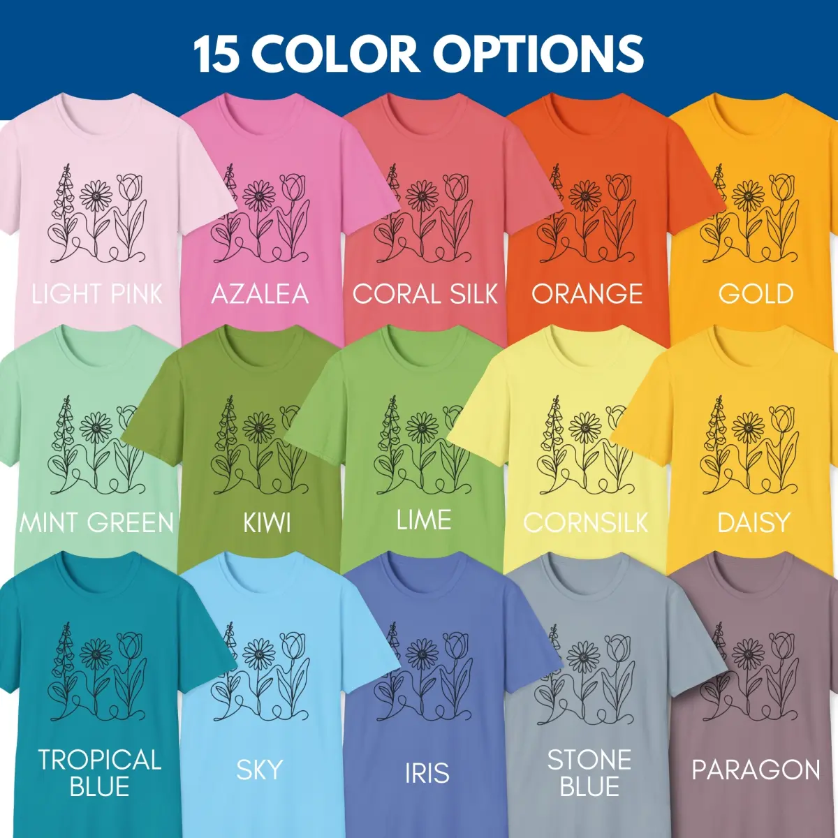 - 15 Color Options (4XL only available in Daisy or Orange)