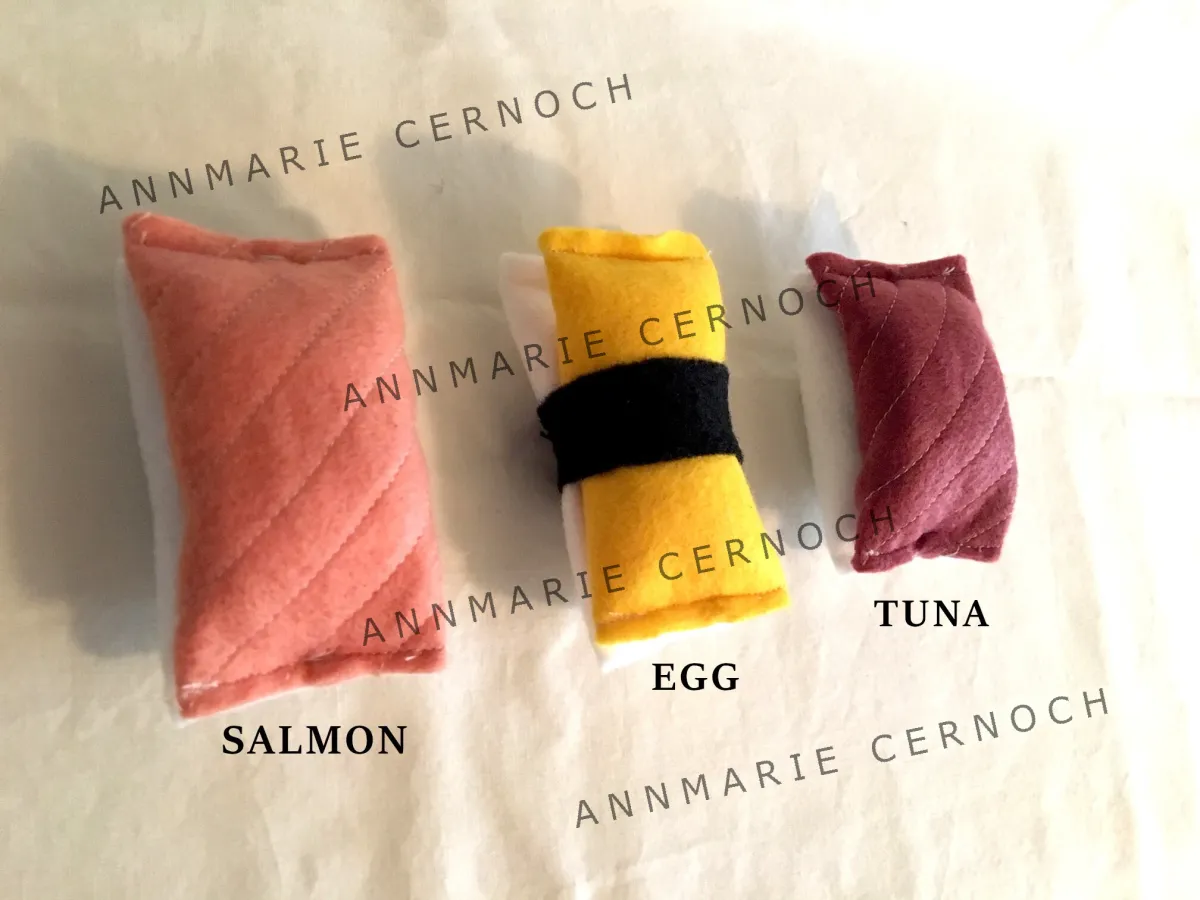 Sushi take out night!..for your cat that is. These savory high quality cat toys are highly recommended by three of the most discriminating kittys I know..my cats! They truly love batting, chasing and rubbing all over these treats. My cats will guarantee your felines will love them too! They make a purrfect cat lover gift.