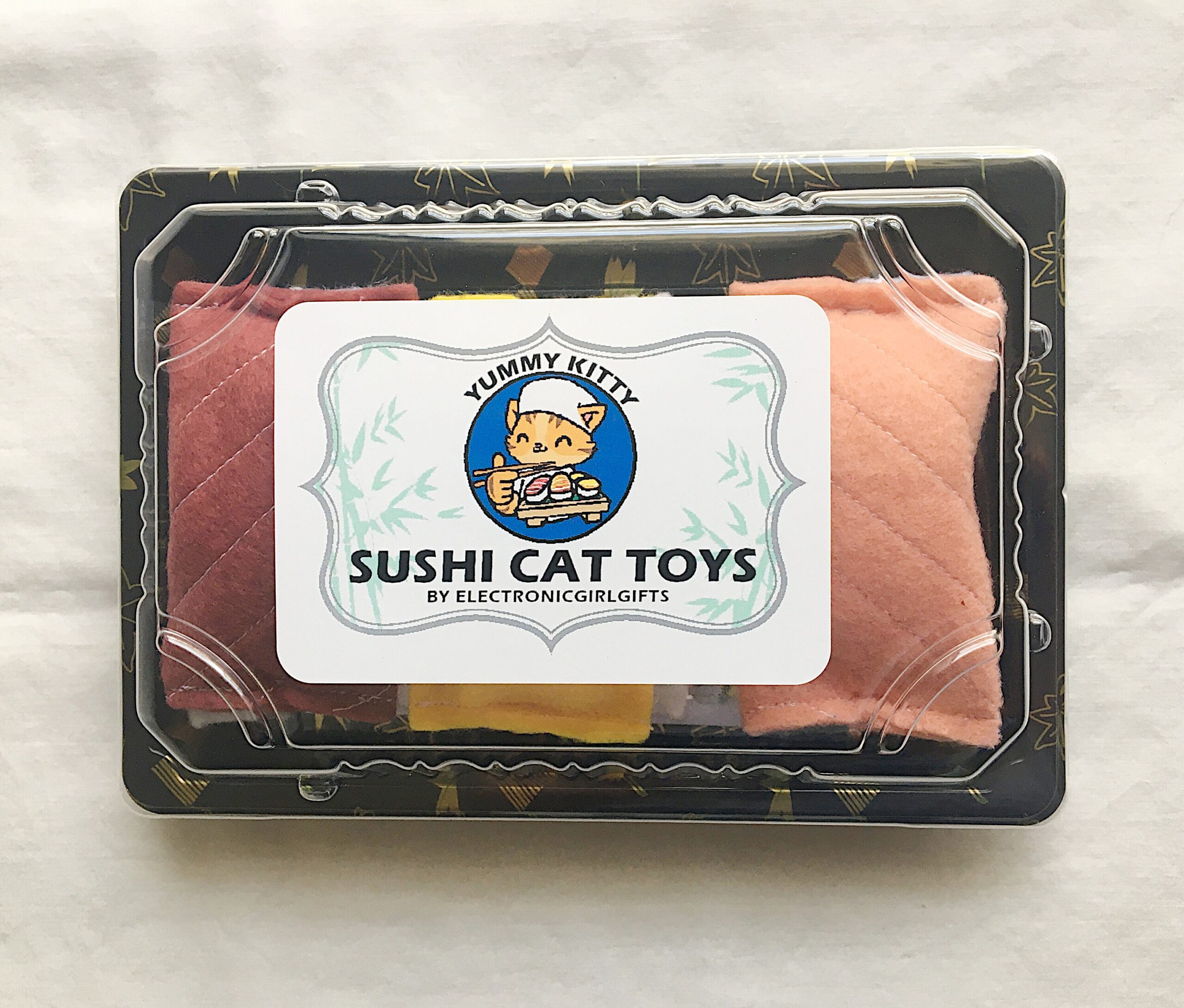 Sushi take out night!..for your cat that is. These savory high quality cat toys are highly recommended by three of the most discriminating kittys I know..my cats! They truly love batting, chasing and rubbing all over these treats. My cats will guarantee your felines will love them too! They make a purrfect cat lover gift.