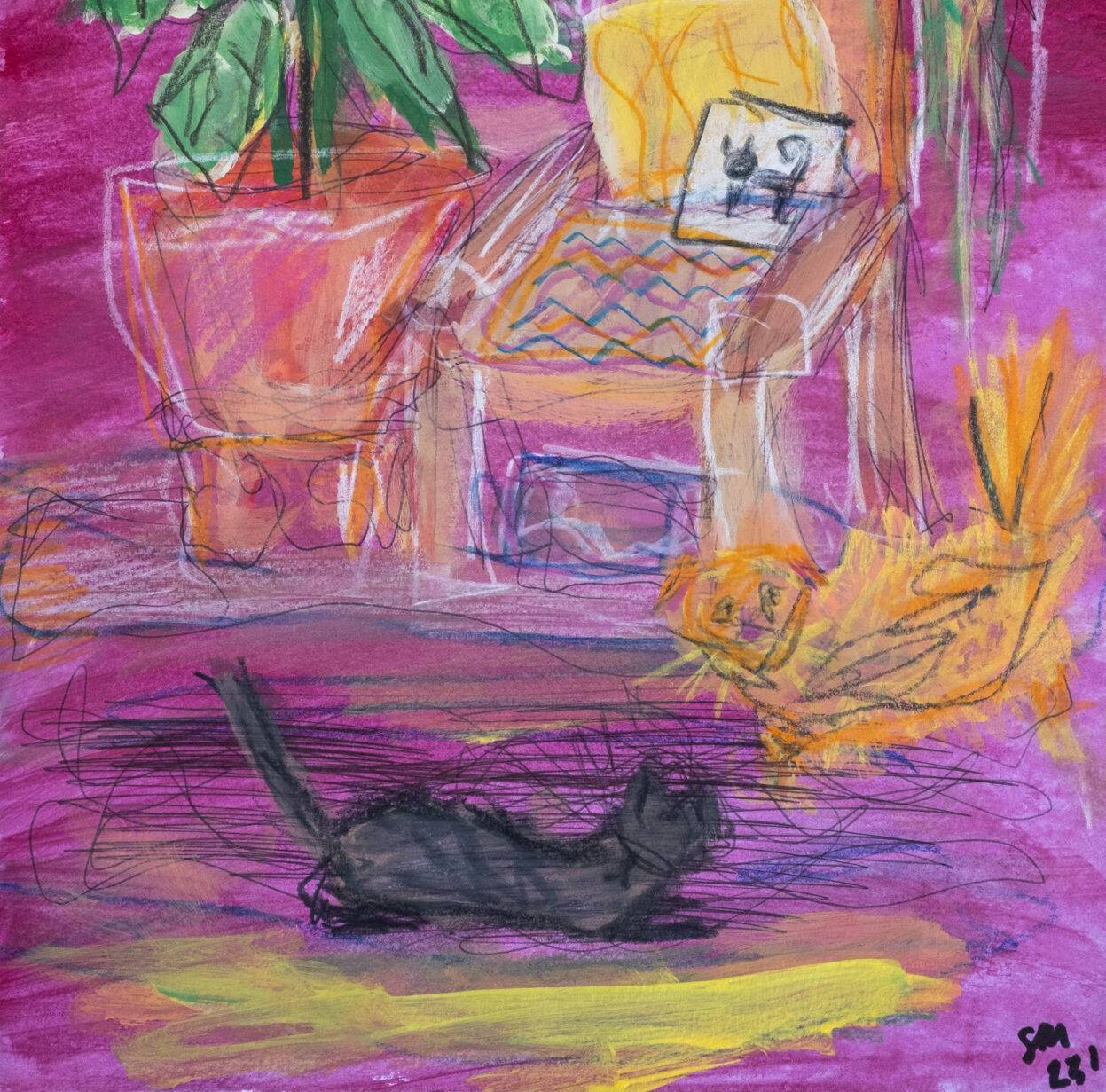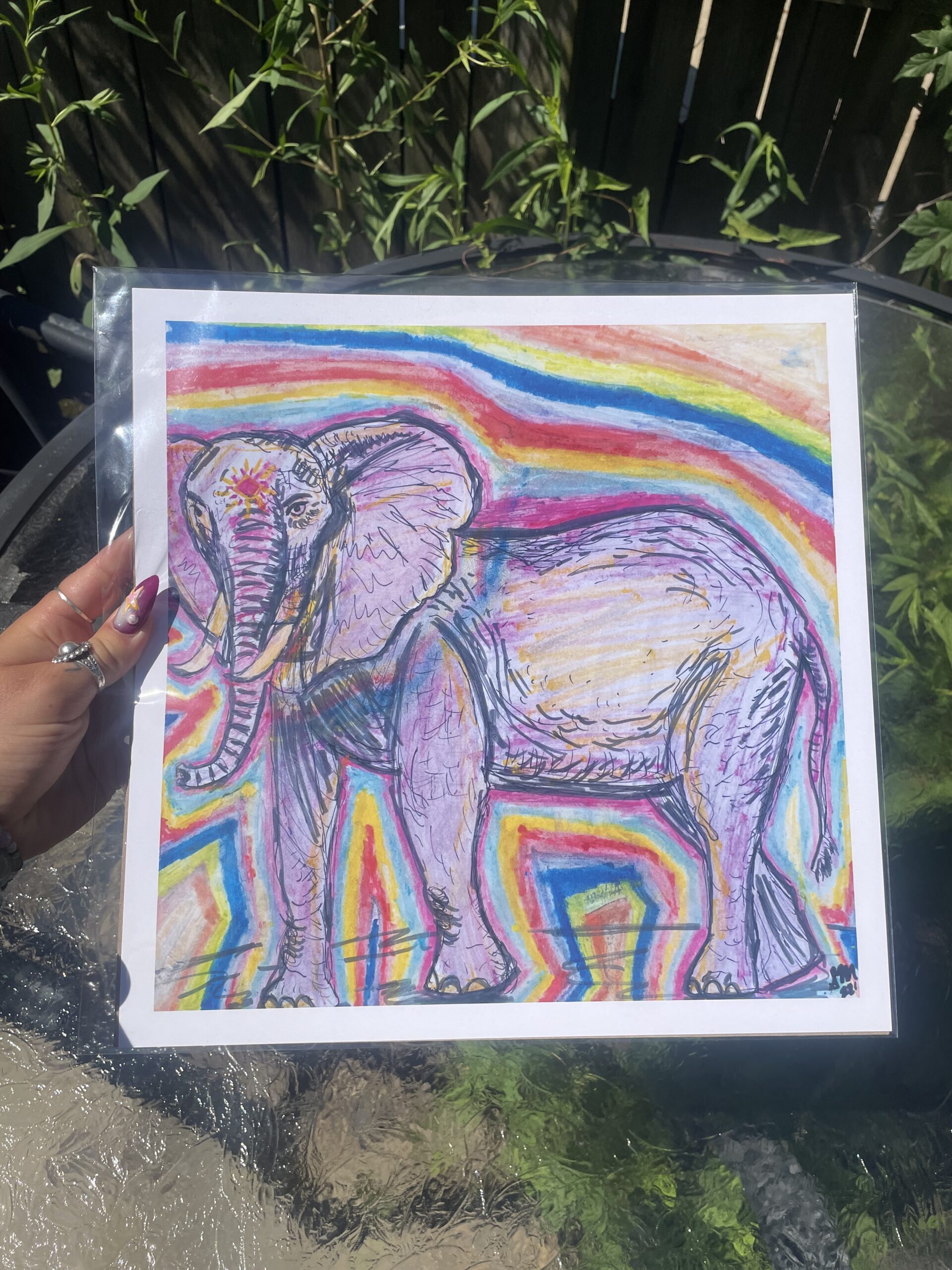 12 x 12 inches print of my artwork including a one inch white border. The original painting was made with watercolor pencils and ink in 2022.
