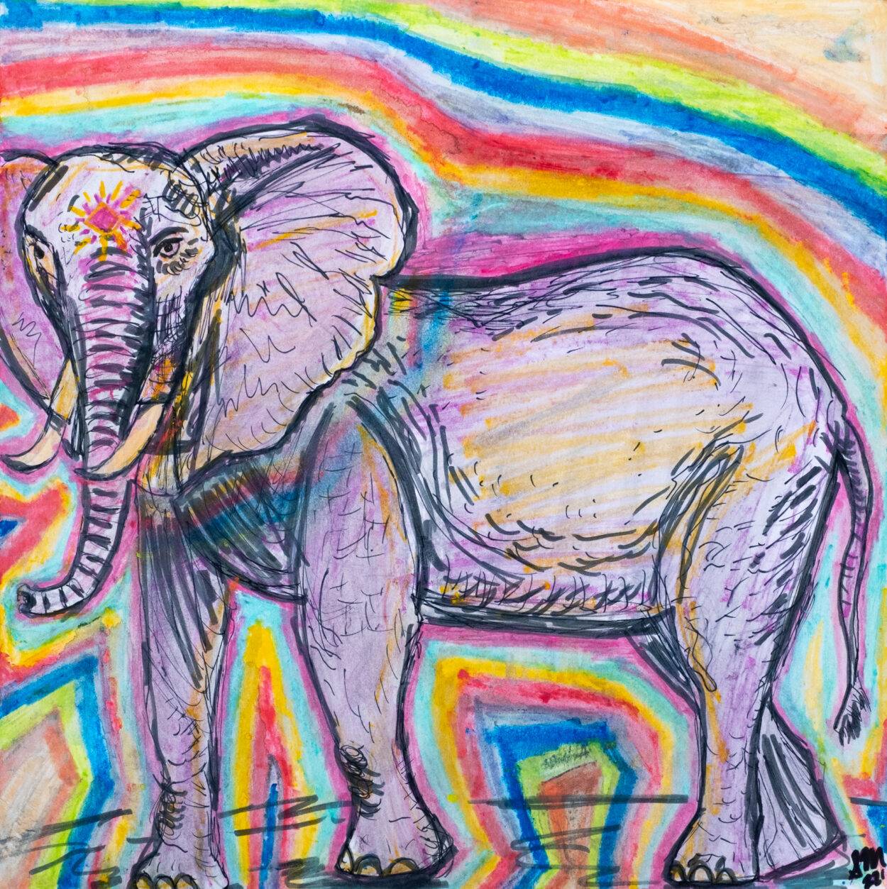 “The Leader” is a self-portrait in a way. I have always had a fascination with elephants for most of my life. They are very family-oriented, and extremely intelligent. They represent strength, wisdom, compassion, luck, protection, resilience, and a long life.