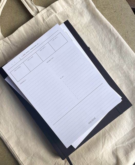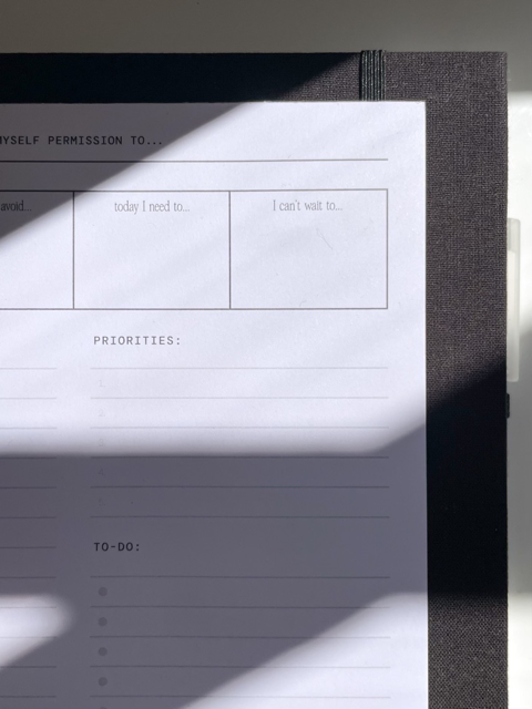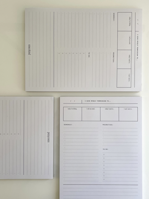 The Nine to Kind Daily Notepad is your hub for your daily schedule and tasks. Just like the Possibility Planner, it includes prompts for mindfulness and prioritization. The pages can tear away, it can go with you on all your errands, and be your desk companion.