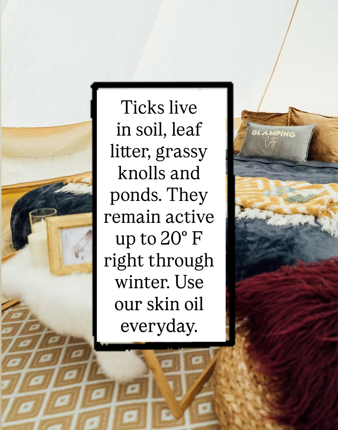 DISCLAIMER: Tick Tock Naturals is a Minimum Risk Pesticide Product and qualifies for exemption from EPA registration under the FIFRA Act. This product meets California Department of Pesticide registrations conditions for minimum risk pesticide.