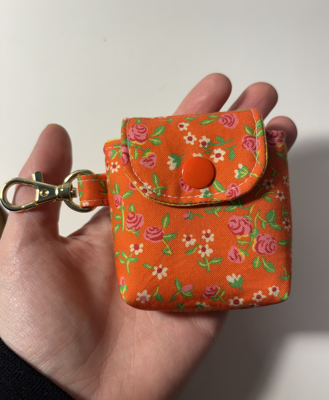 Ever felt like your tote bag needed it’s own tote bag? You’re in luck with this tiny tote keychain! This sweet little tote bag-shaped keychain with a zipper pouch, perfect to hold your earbuds, phone charger, hand sanitizer, or other small items. Outer and inner fabrics are both cotton. Features a tiny outer pocket with a snap close. Tiny Tote pattern is by Craft Owl Handmade.