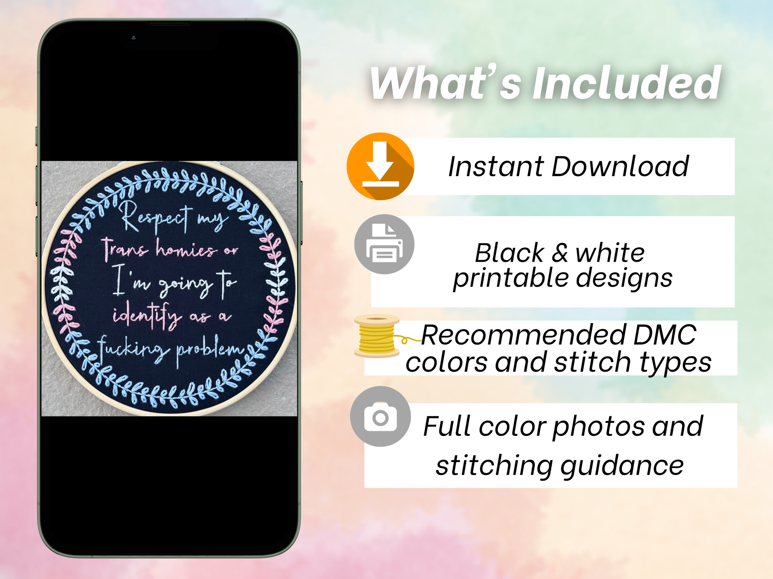 Trans Pride Hand Embroidery Pattern: LGBTQ+ Respect / Allyship Design (PDF Pattern)