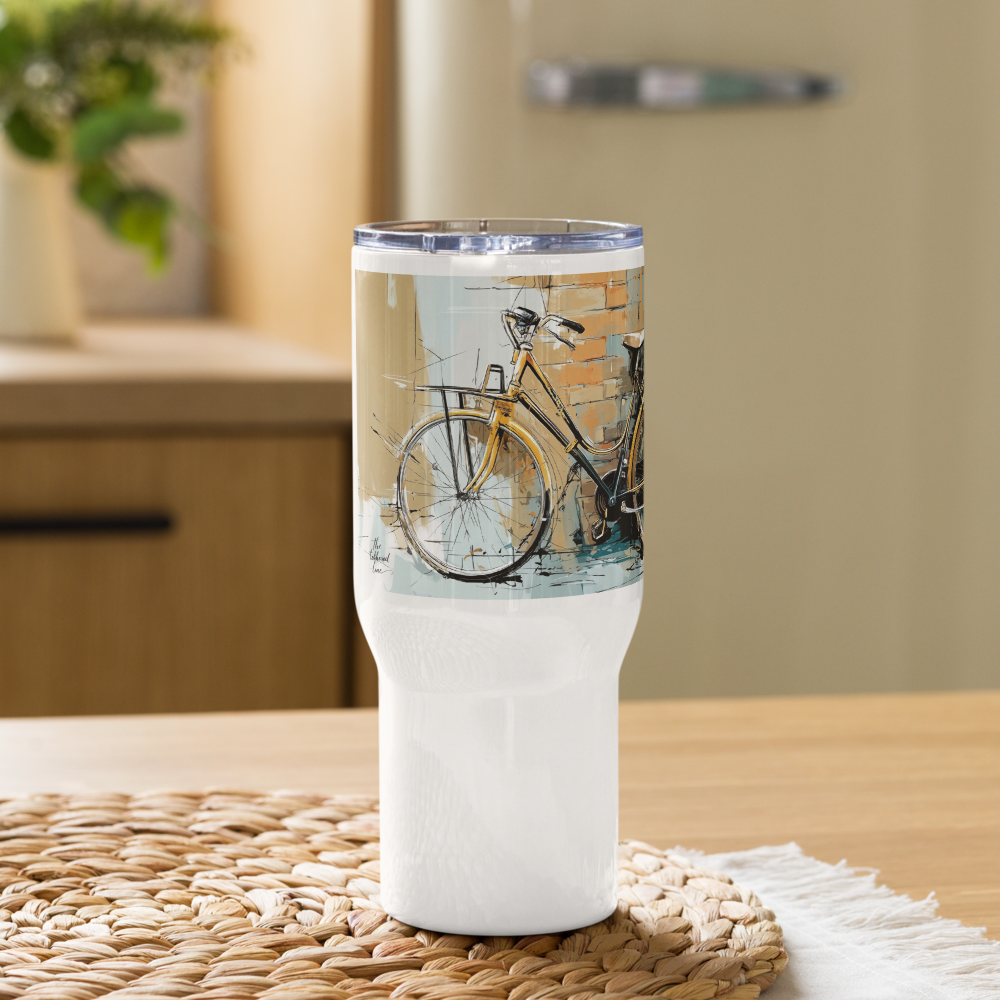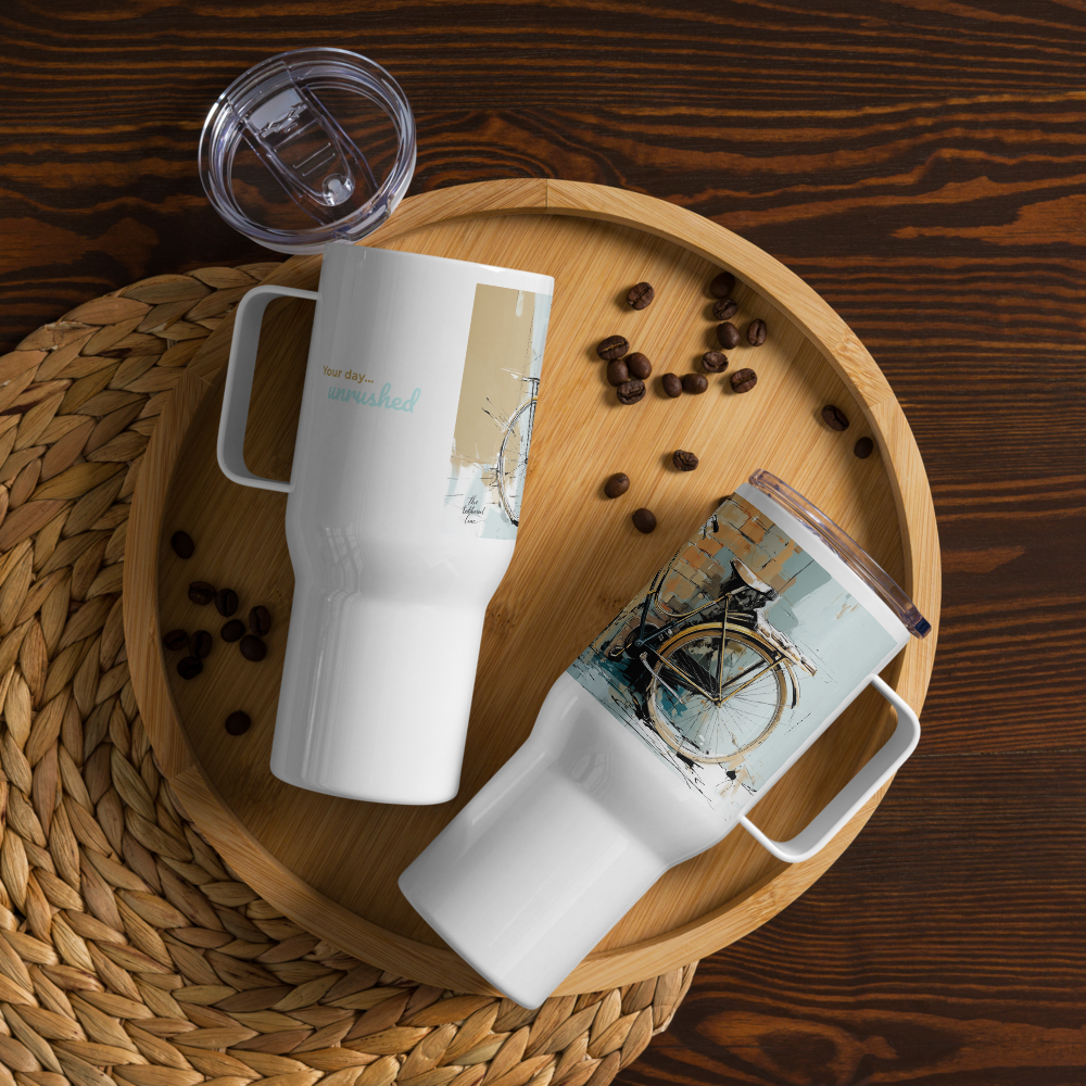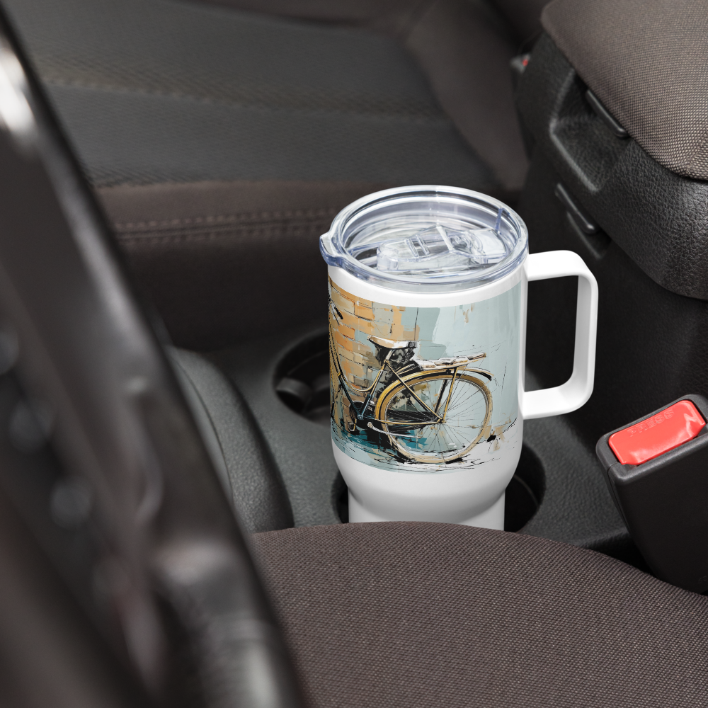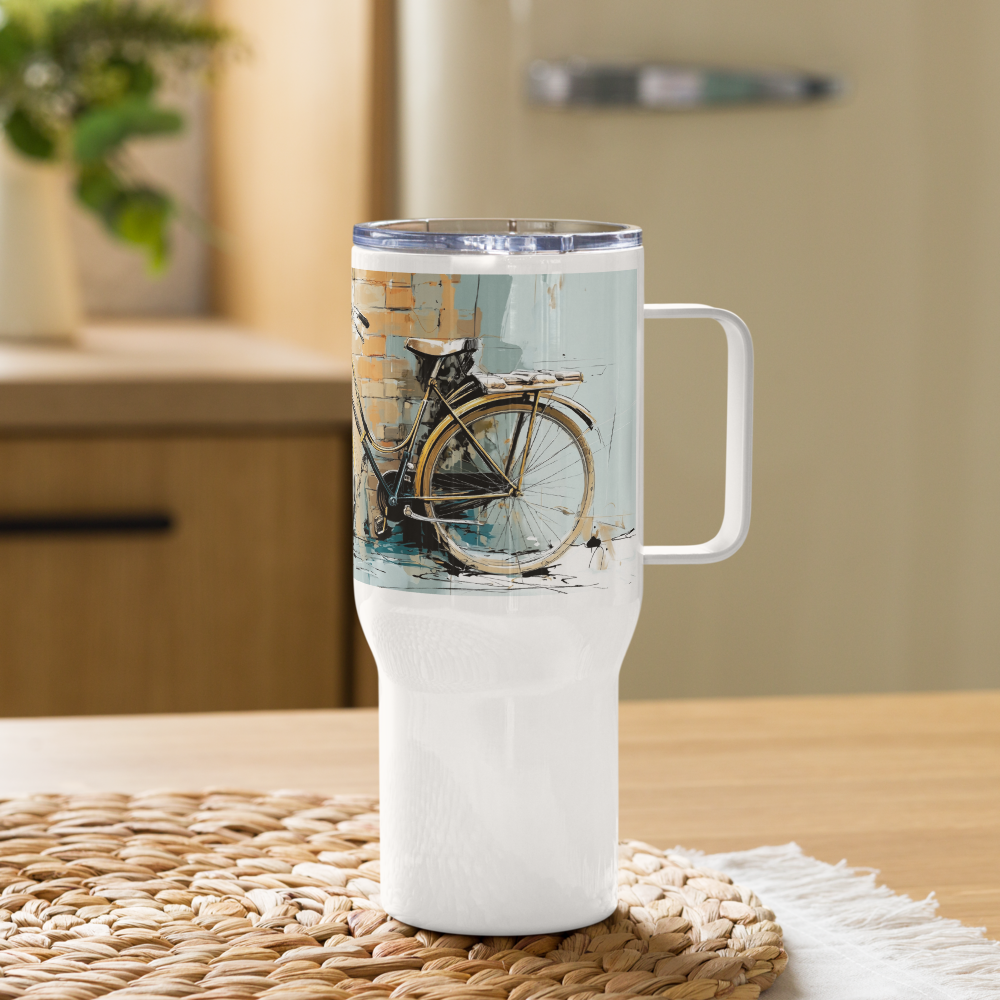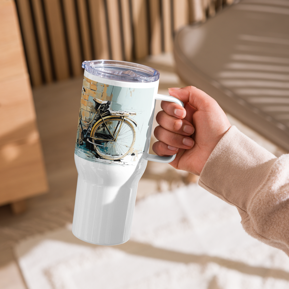 Travel Mug w/handle – Wheels – On Florentine Time (25 oz or 40 oz)