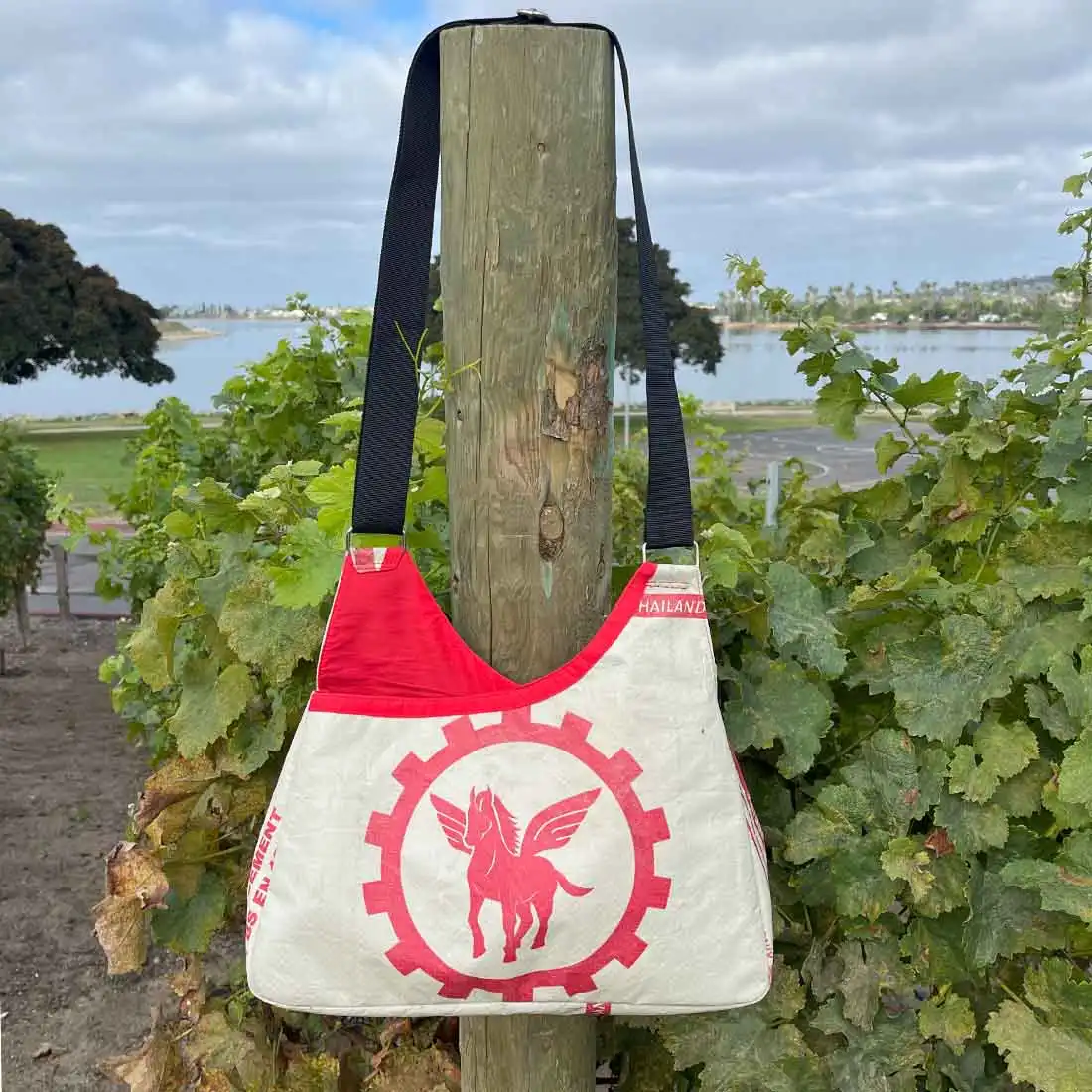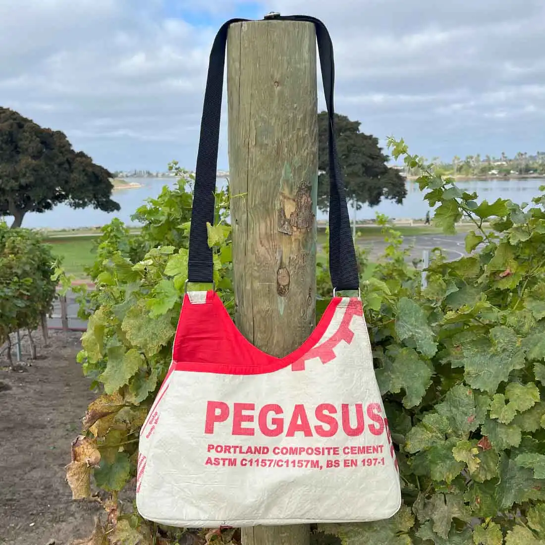 Our recyled cement triangle crossbody bags are a popular roomy style. The flat bottom and tapered shape allows you to pack them full without getting too bulky. Toss your lap top in and get going to work, or toss your water bottle in instead, and get to heading on your next adventure! Carry it all and make an eco-friendly fashion statement.