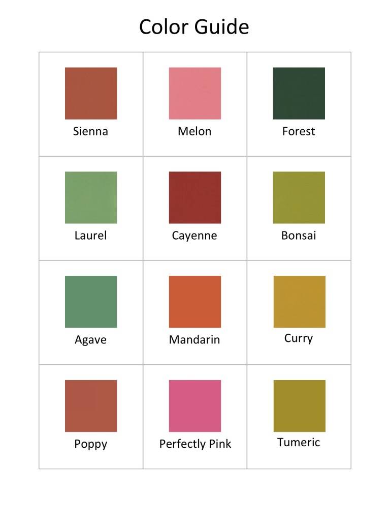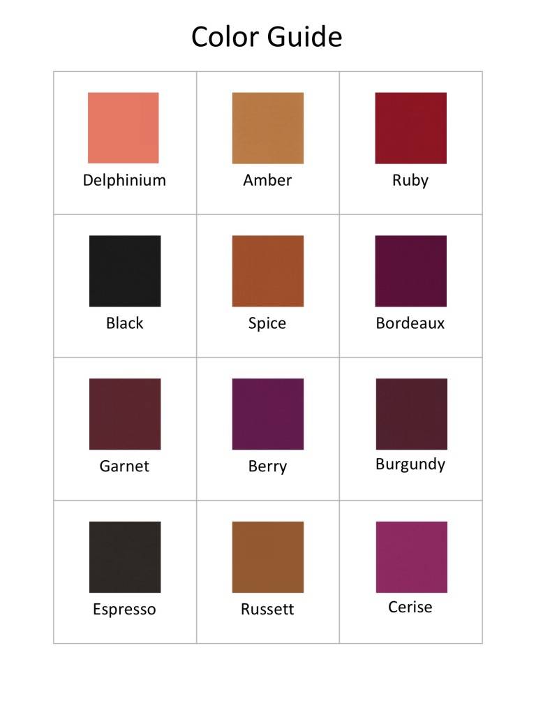 | Fabric color | Agave, Amber, Avocado, Azalea, Black, Bonsai, Bordeaux, Burgundy, Cayenne, Cerise, China Blue, Curry, Delphinium, Garnet, Wine, Melon, Kelp, Laurel, Mahagony, Navy, Night Sky, Ochre, Perfectly Pink, Poppy, Provence Blue, Stormy, Russett, Ruby, Sangria, Shark, Slate, Truffle, Tumeric, Wild Rose |