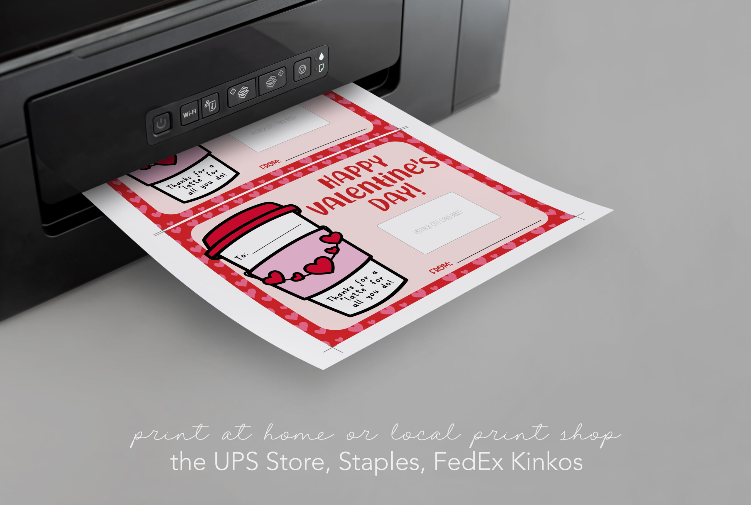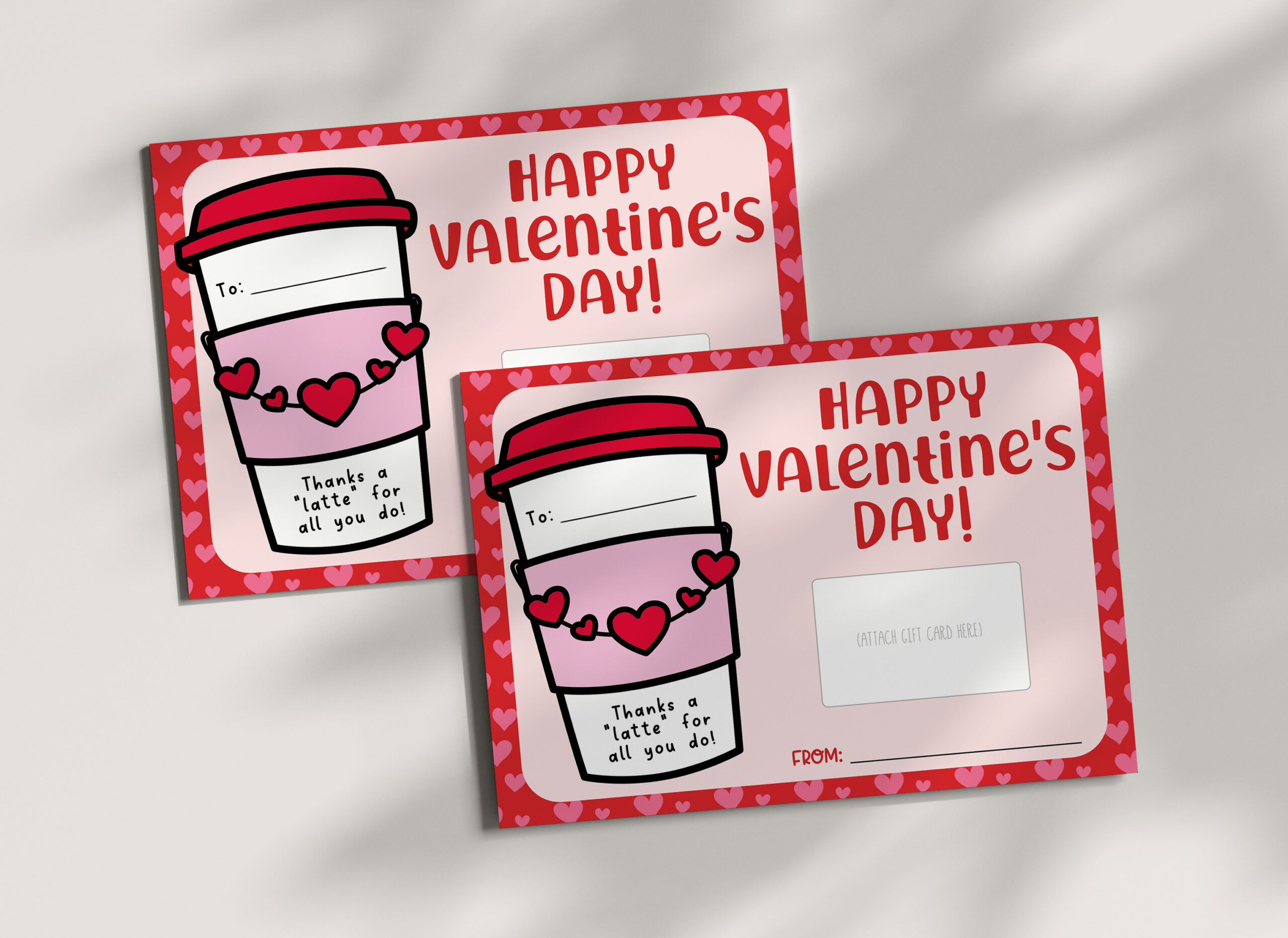 Easy to print Valentine Gift Card Holder perfect for the coffee lover. Simply print, sign and attach any coffee shop gift card.