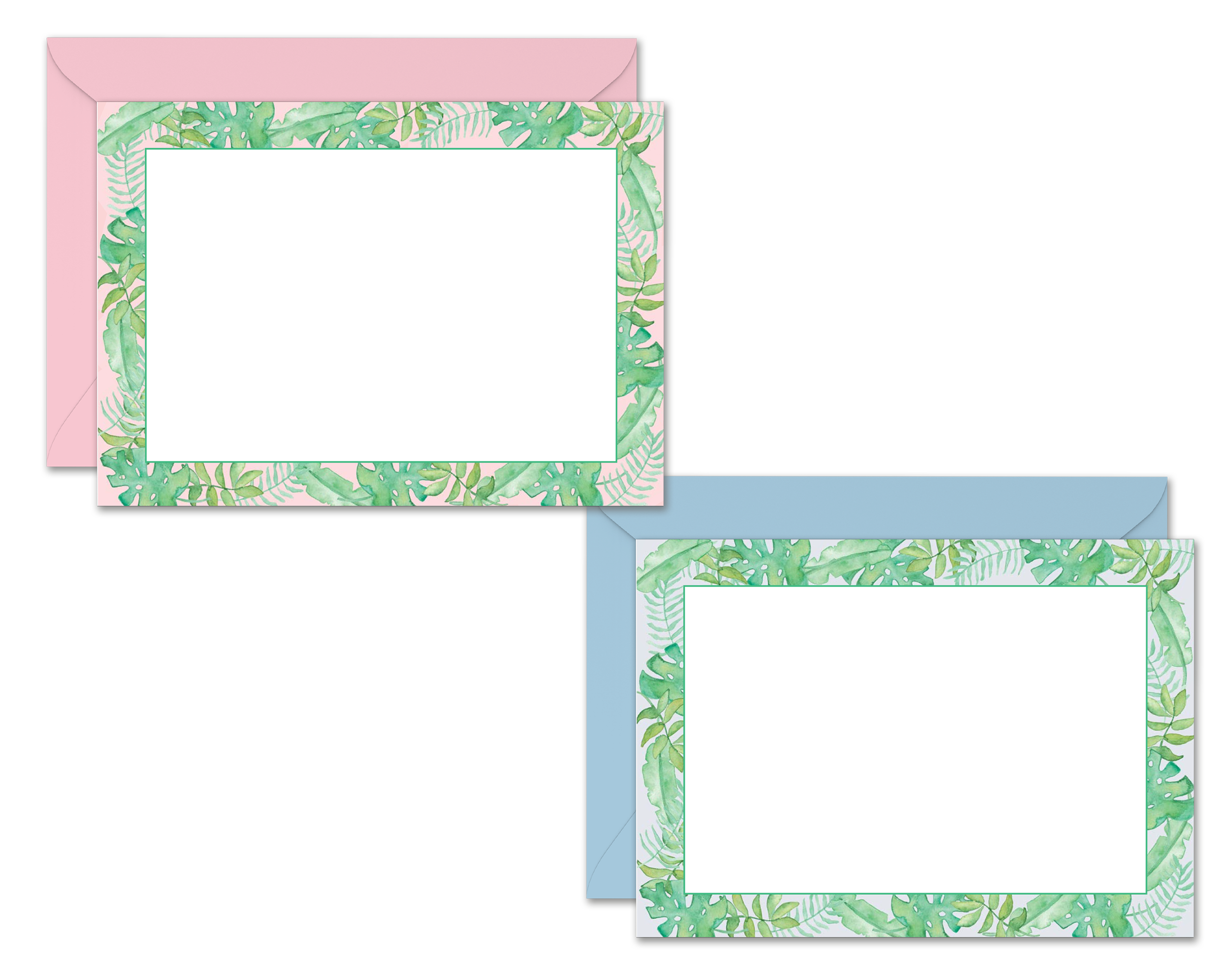 Watercolor Tropical Leaves Flat Notecard Stationery Set