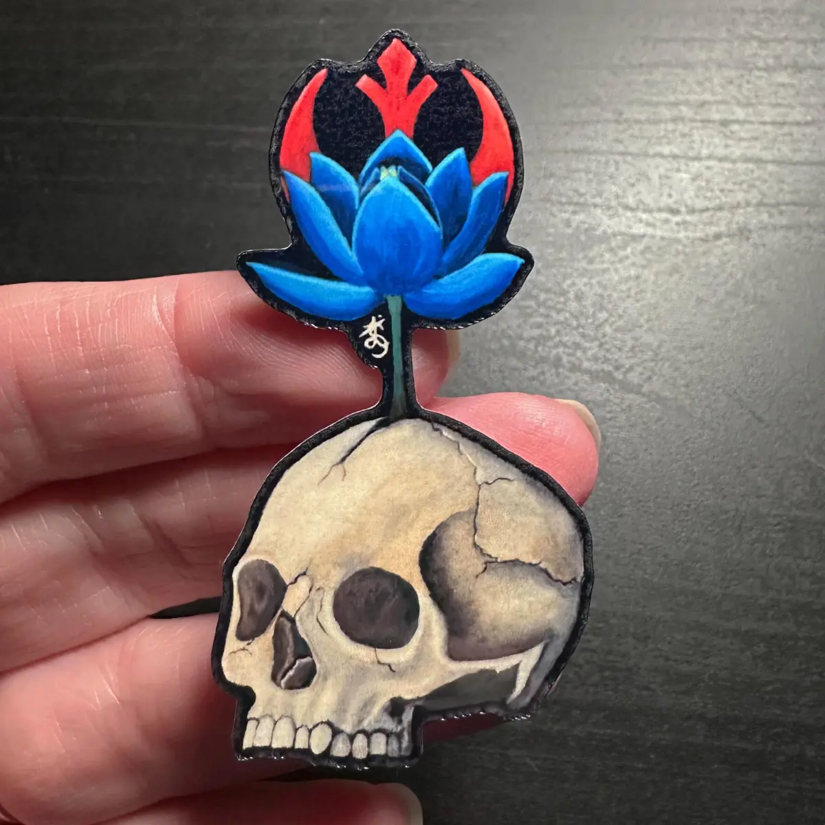 A cute flying fox sitting on top of a celestial lantern surrounded by sunflowers. This was originally a custom commission painting, now offered to you in tiny sticker form. This sticker is just under 2.5 inches tall, but if you would like a different size feel free to reach out to me using the “custom request” option.