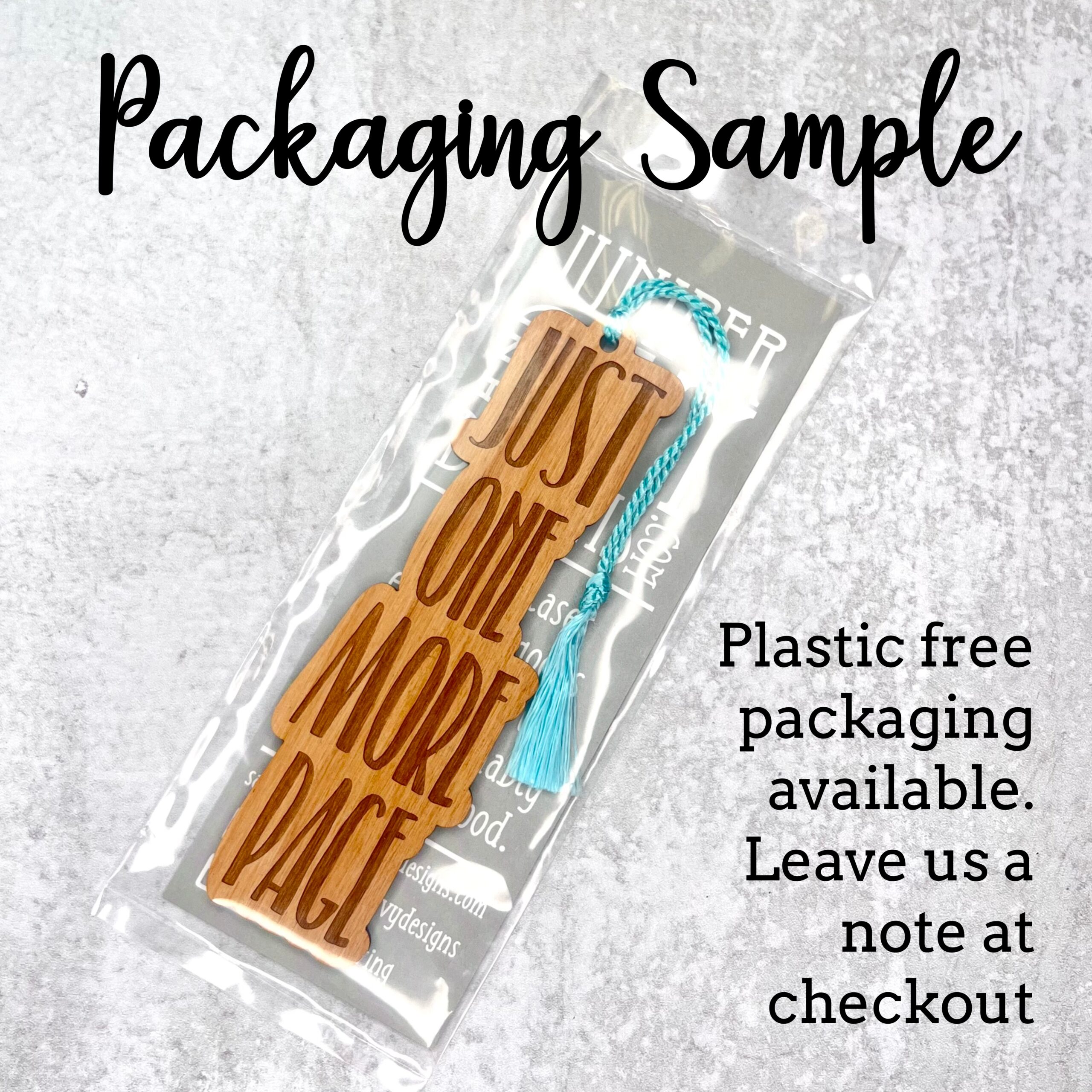 A fun and unique way to hold your place, these wooden bookmarks are the perfect addition to your library and make a great gift for the book lover in your life! Laser engraved and cut from real Alder wood, the bookmark will come packaged on a card similar to the picture.