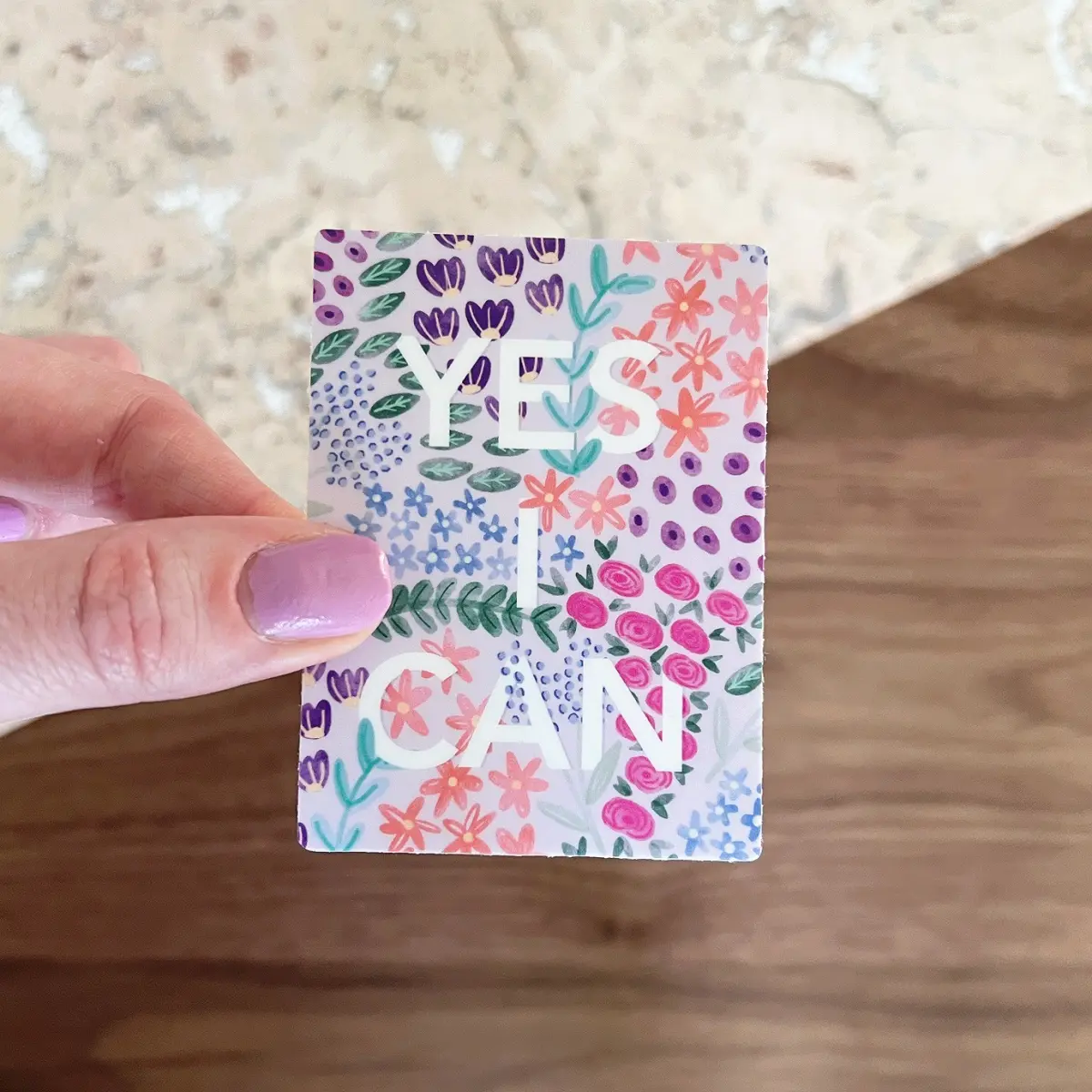 Sticker features the phrase “work bitch” hand-lettered by Rachel of Lemon Press Studio in a modern calligraphy style, with a neon sign effect