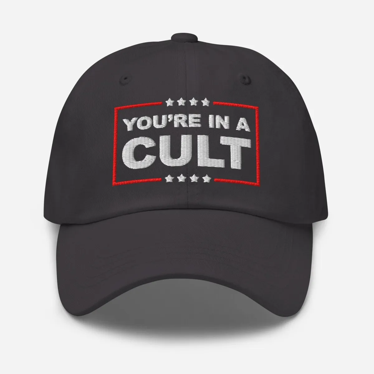 Say what the whole world really thinks about MAGA with our You’re In A Cult hat from Resistance Nation! Embroidered unisex 6-panel 100% cotton twill cap with adjustable buckle closure. Fits most adults.